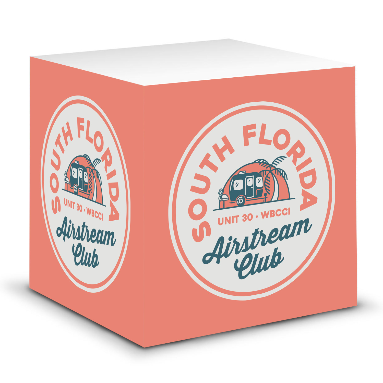 This note cube features 700 sheets of matte, white paper. Each sheet measures at 3.5 by 3.5 inches and has an adhesive strip at its top. Your personalized design is displayed on all four edges of the sticky pad.