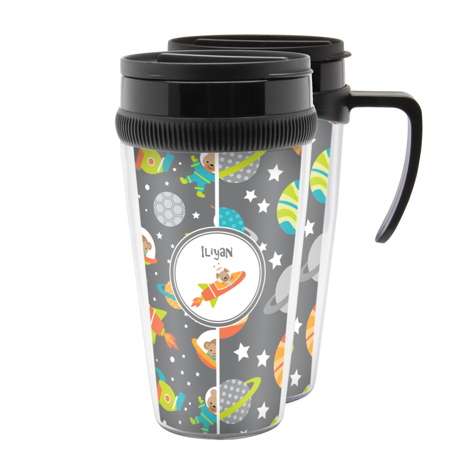 Keep your drink secure while on your daily commute with one of our personalized travel mugs! These travel mugs will add a splash of color and creativity to your kitchen counter-top, car cup holder, office desk, or wherever you choose to place them! With these custom mugs, you'll never have to settle for a boring, run-of-the-mill travel mug.