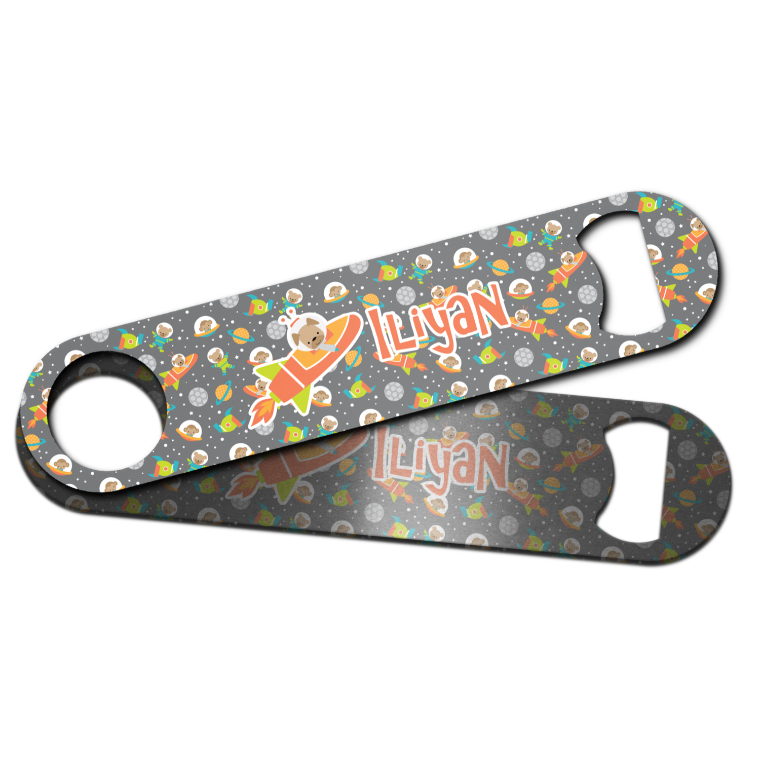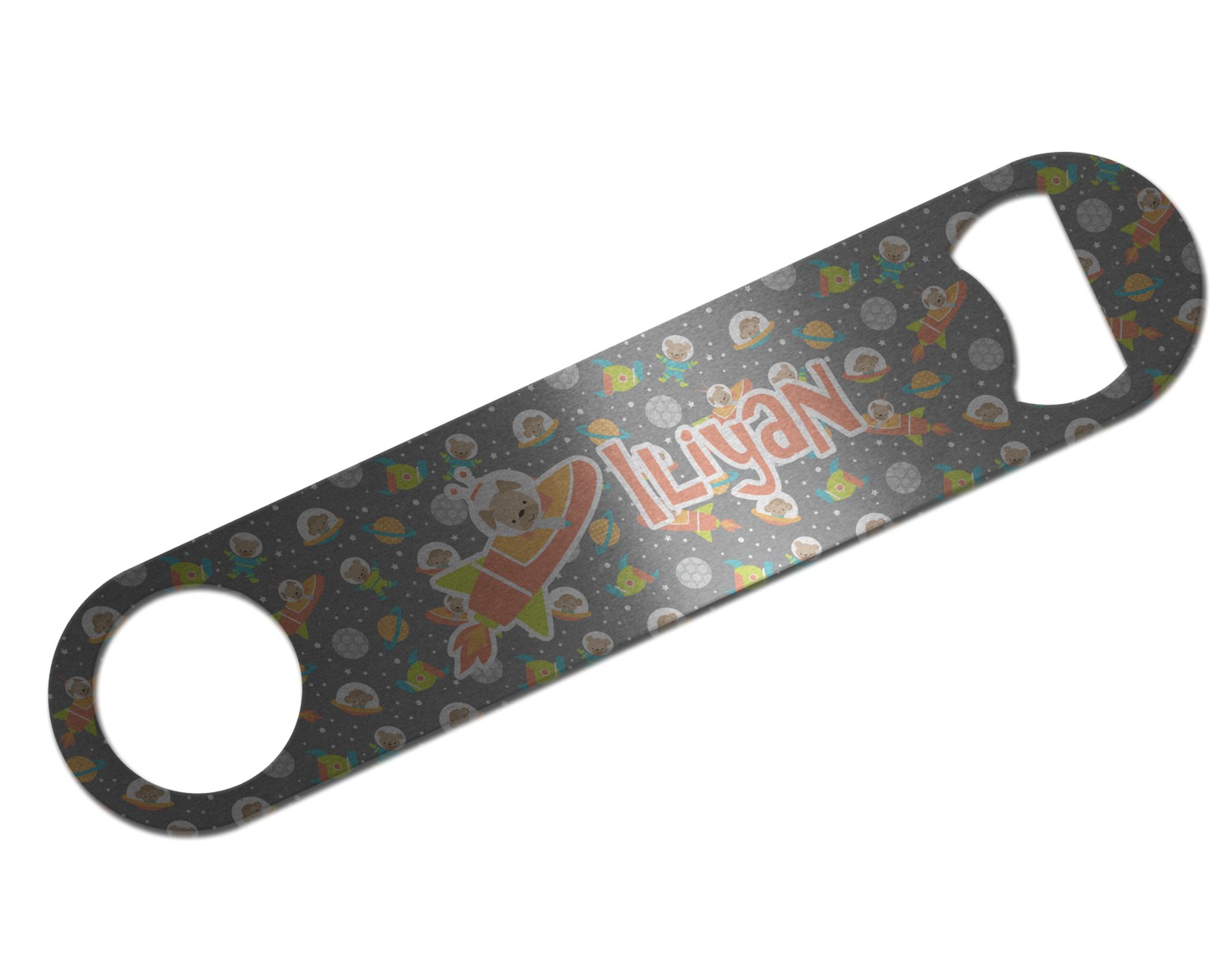 Stop struggling with the caps or your bottled beverages by purchasing one of our personalized bottle openers! These wrench-like custom bar blades are built to last. Customize one for your home's bar, or as a practical gift for a loved one!