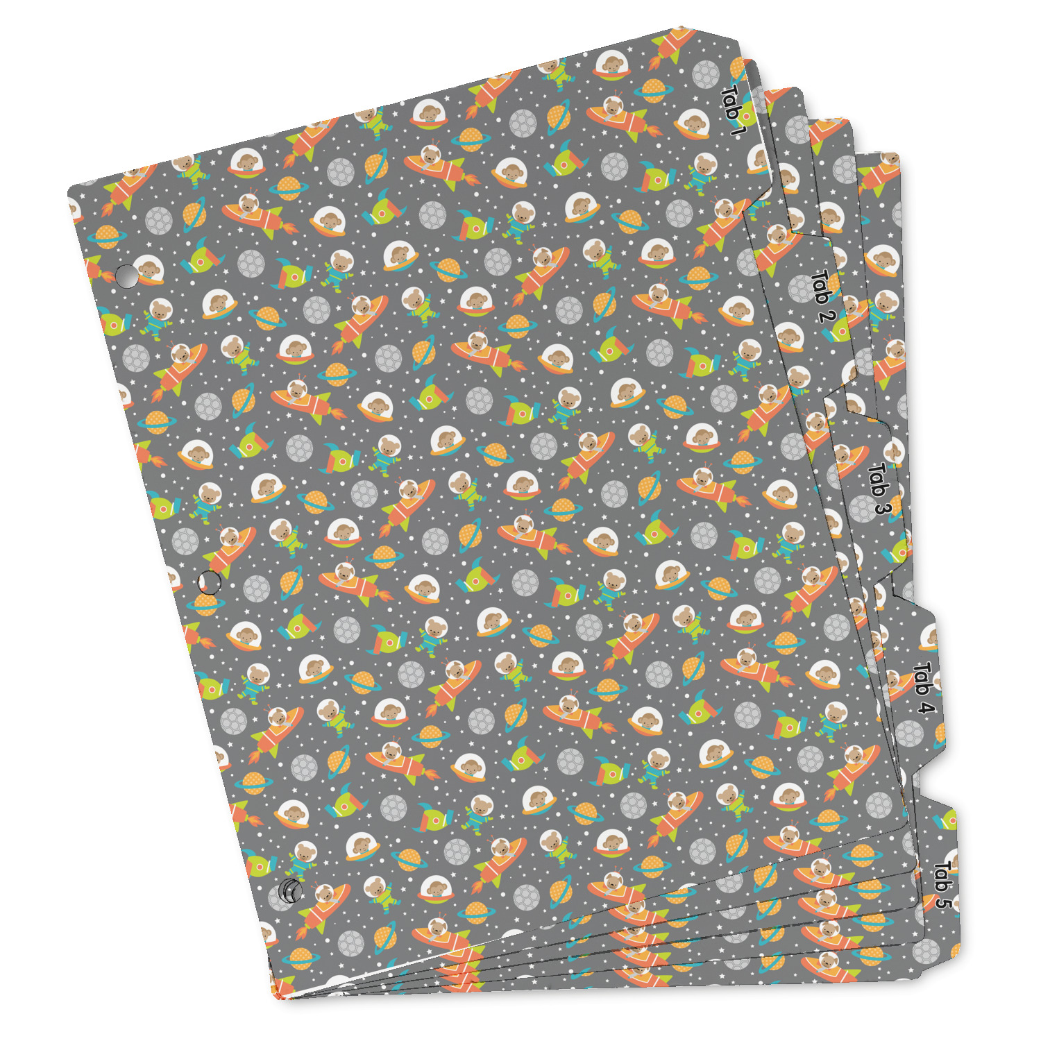 The design is filled with adorable little animal friends in space suits and space ships! On the other side, there are cute little coordinating planets! The bright colors on the animals and planets make for a great contrast to the dark grey background.