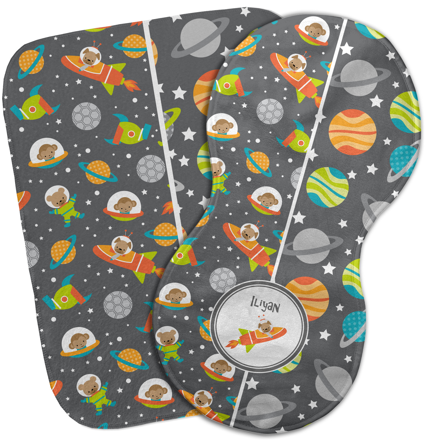 Choose your baby burp cloth from our two styles - Fleece (rectangular) or Microfiber Velour (peanut shape). The lightweight and absorbent design makes each burp cloth multipurpose; use them as a burp pad, a lap pad, a changing table, or a spare cloth to clean up any baby mess. Your customization is displayed across the front with baby-safe ink to ensure extra comfort with a white backing.