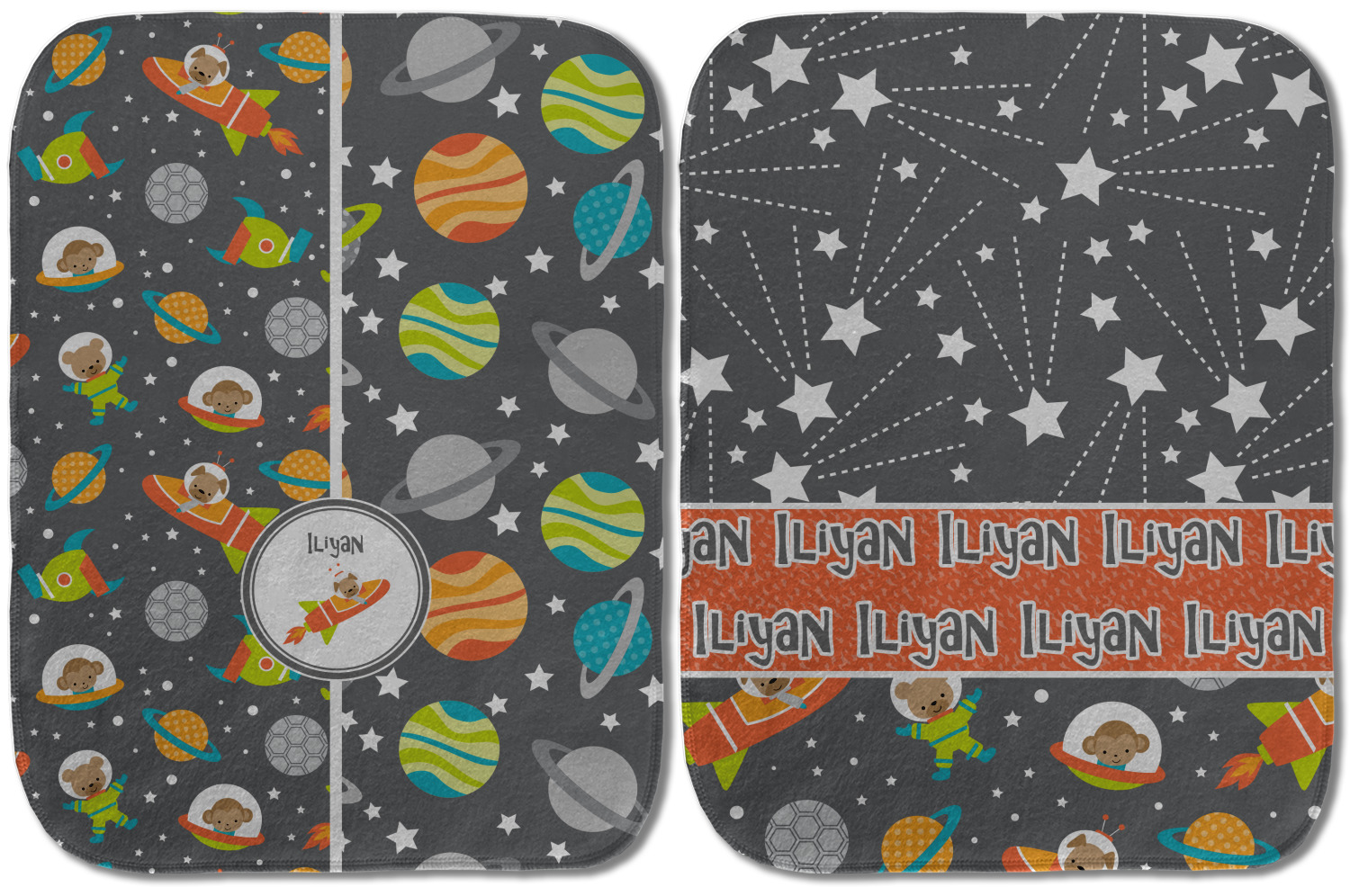 Choose your baby burp cloth from our two styles - Fleece (rectangular) or Microfiber Velour (peanut shape). The lightweight and absorbent design makes each burp cloth multipurpose; use them as a burp pad, a lap pad, a changing table, or a spare cloth to clean up any baby mess. Your customization is displayed across the front with baby-safe ink to ensure extra comfort with a white backing.