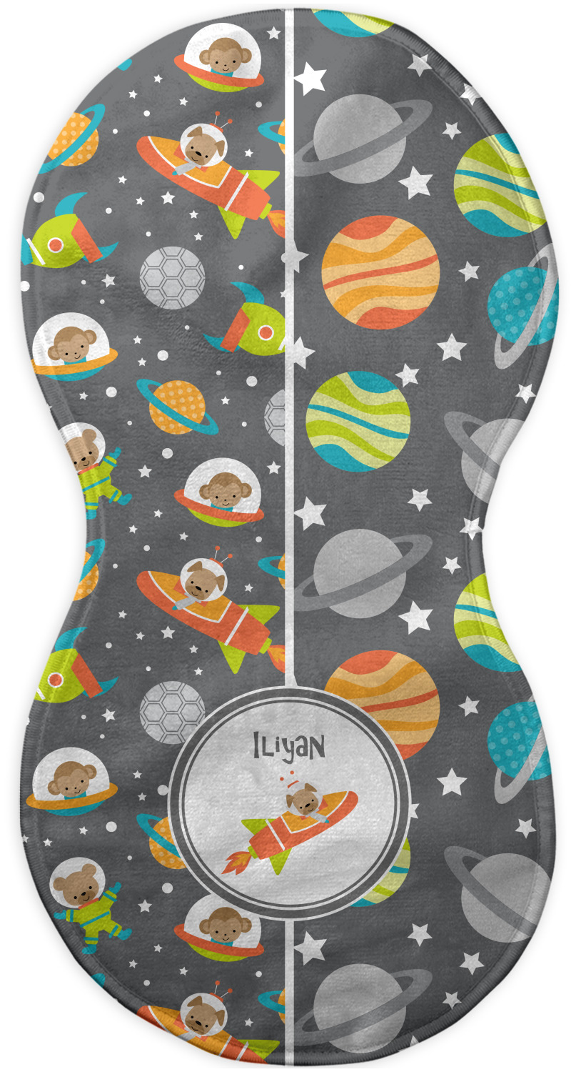 Choose your baby burp cloth from our two styles - Fleece (rectangular) or Microfiber Velour (peanut shape). The lightweight and absorbent design makes each burp cloth multipurpose; use them as a burp pad, a lap pad, a changing table, or a spare cloth to clean up any baby mess. Your customization is displayed across the front with baby-safe ink to ensure extra comfort with a white backing.