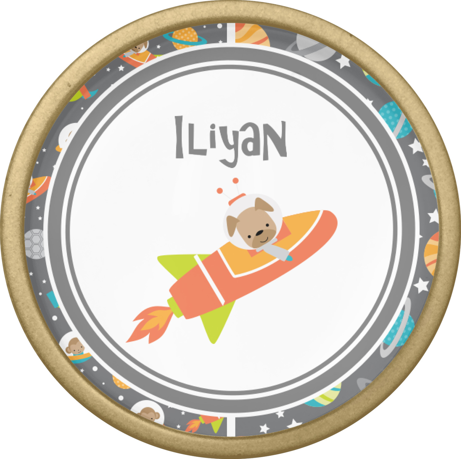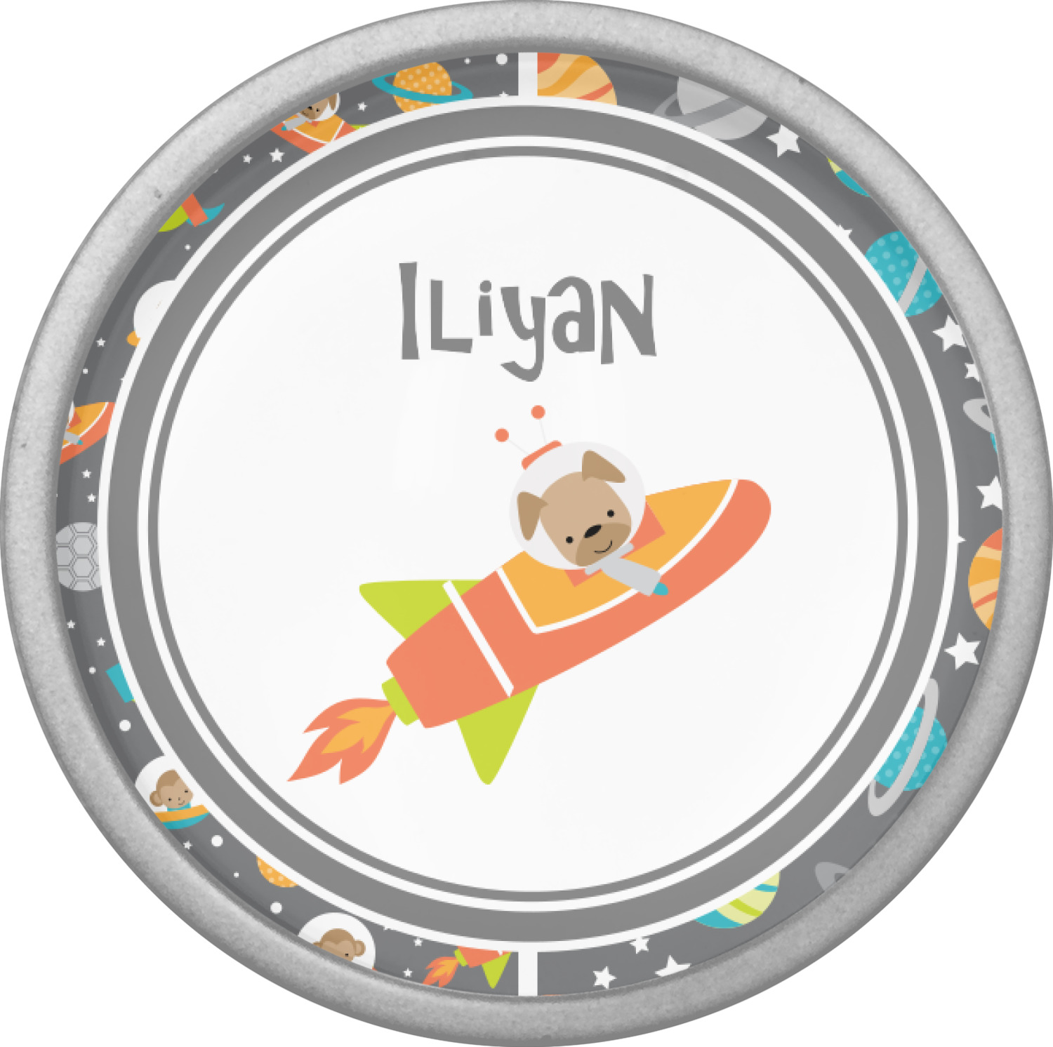The design is filled with adorable little animal friends in space suits and space ships! On the other side, there are cute little coordinating planets! The bright colors on the animals and planets make for a great contrast to the dark grey background.