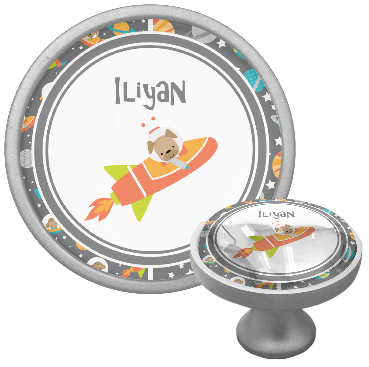 We sell these cabinet pulls in two different colors to better match your room's color scheme. We offer an oil-rubbed bronze base that is black in color, and a satin nickel option, which has a silver color. Your design is displayed across a high gloss vinyl insert that is placed on top of these cabinet handles. We then place a 1 inch thick glass cabochon atop the design, which seals the cabinet knob and makes the colors of your customization stand out. These custom cabinet knobs are approximately 1.3 inches in diameter. Your purchase includes a 1 inch screw that can be used to mount the knob to any cabinet in your home.