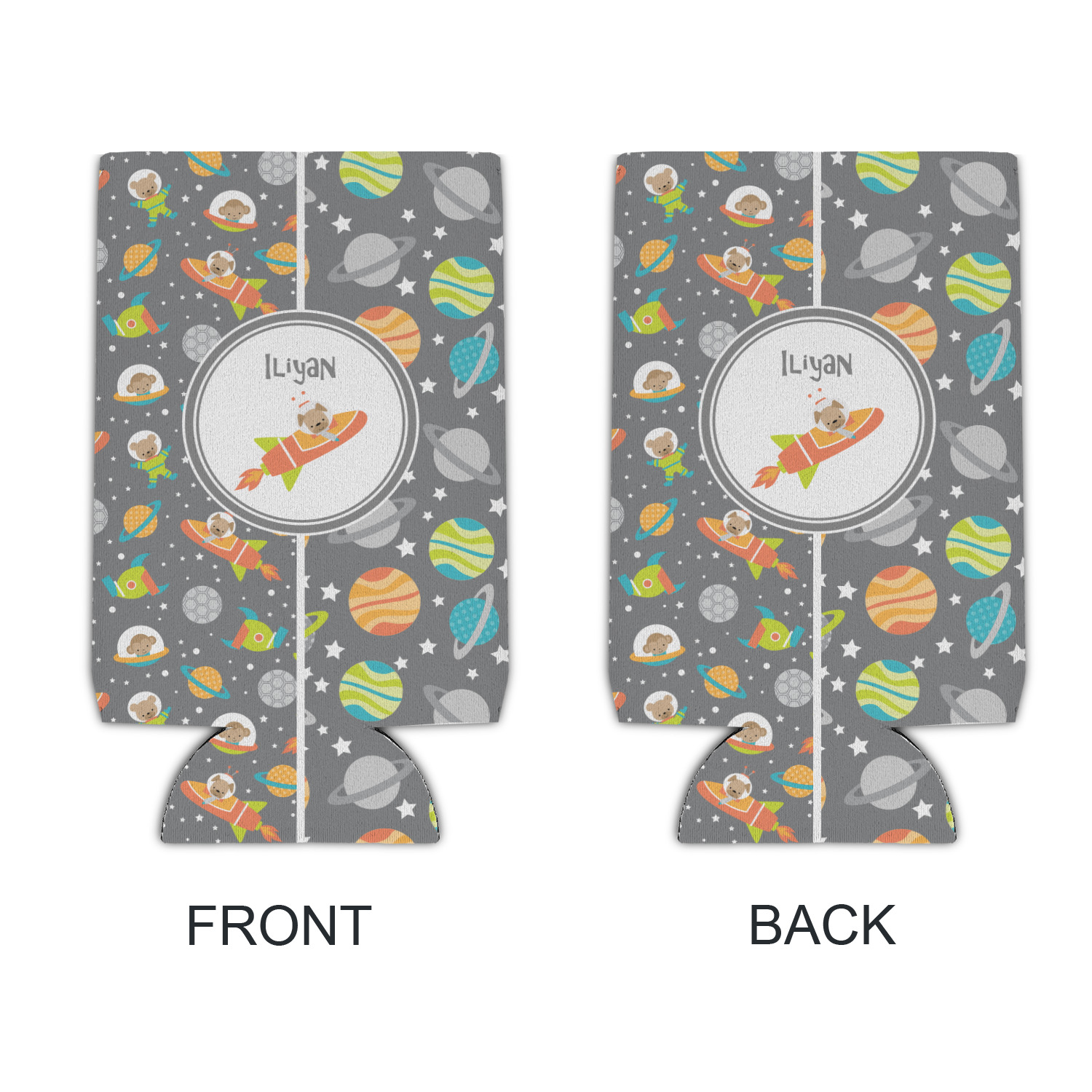 The design is filled with adorable little animal friends in space suits and space ships! On the other side, there are cute little coordinating planets! The bright colors on the animals and planets make for a great contrast to the dark grey background.