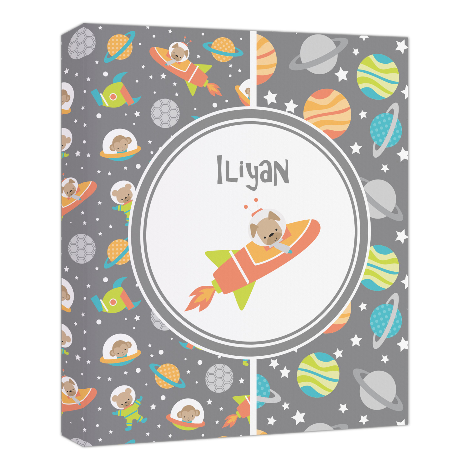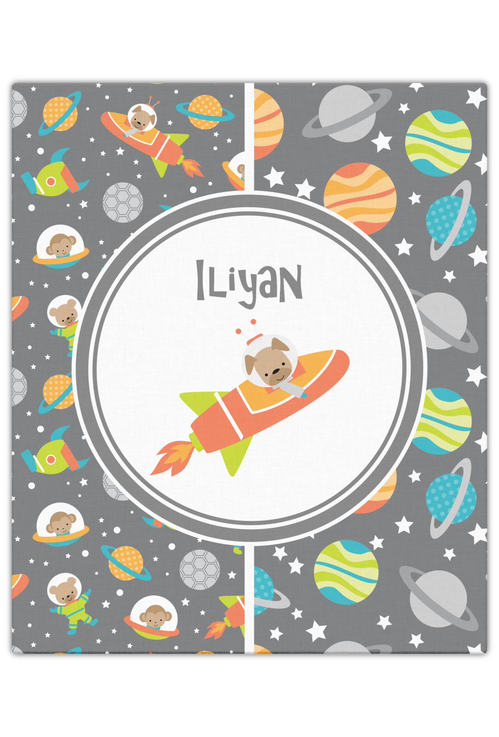 The design is filled with adorable little animal friends in space suits and space ships! On the other side, there are cute little coordinating planets! The bright colors on the animals and planets make for a great contrast to the dark grey background.