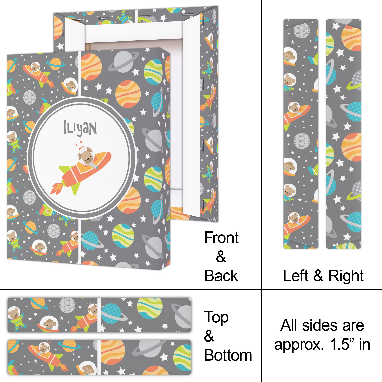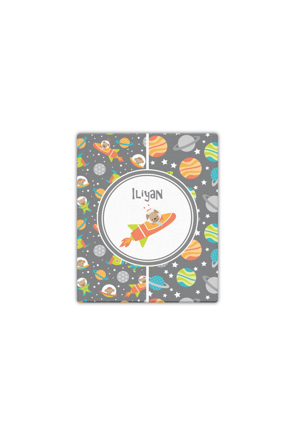 The design is filled with adorable little animal friends in space suits and space ships! On the other side, there are cute little coordinating planets! The bright colors on the animals and planets make for a great contrast to the dark grey background.