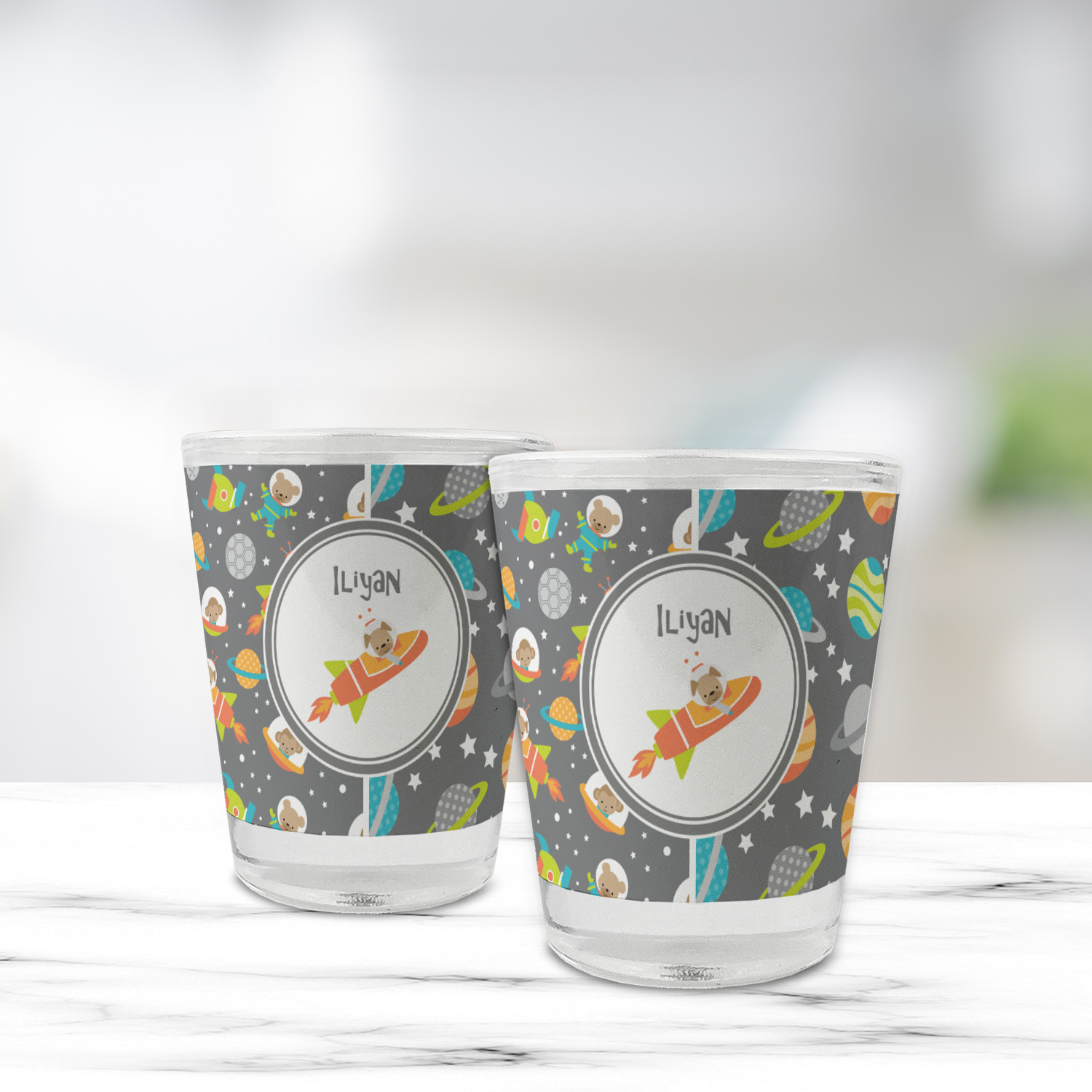 Made with frosted glass, these shot glasses are printed in full color with the design of your choice. They are a standard 1.5oz shot glass and are 2.4" tall. The print is wrapped around the shot glass in a full wrap and boldly displays your customization.