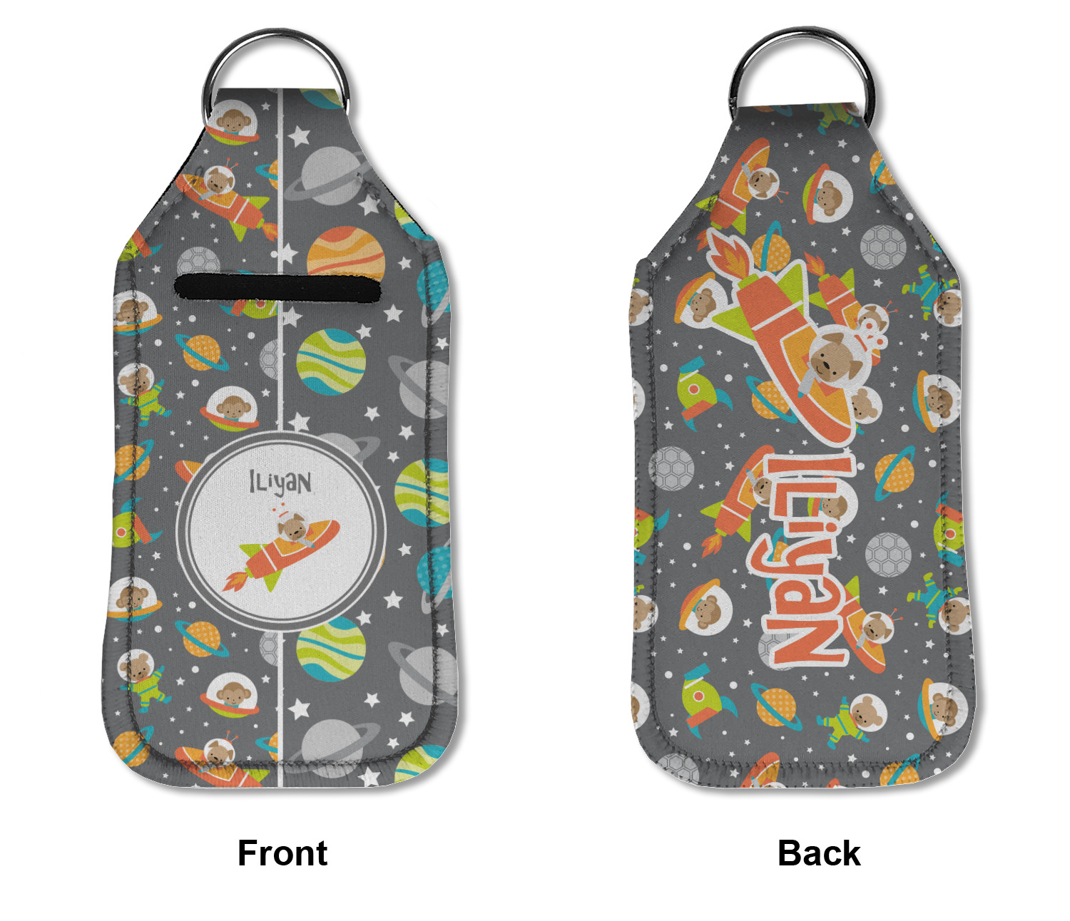Each hand sanitizer holder comes with its own empty travel-sized, refillable hand sanitizer sure to fit snug in your customized sanitizer case! Our hand sanitizer cases are a durable, yet soft neoprene material sure to last any daily activities or travel agenda. Customize and personalize a hand sanitizer bottle holder with one of our two sizes - small (4.25" x 2.25") or large (5.5" x 2.5"). Each travel sanitizer holder comes with a keyring for attachment on bags, keys, or more!