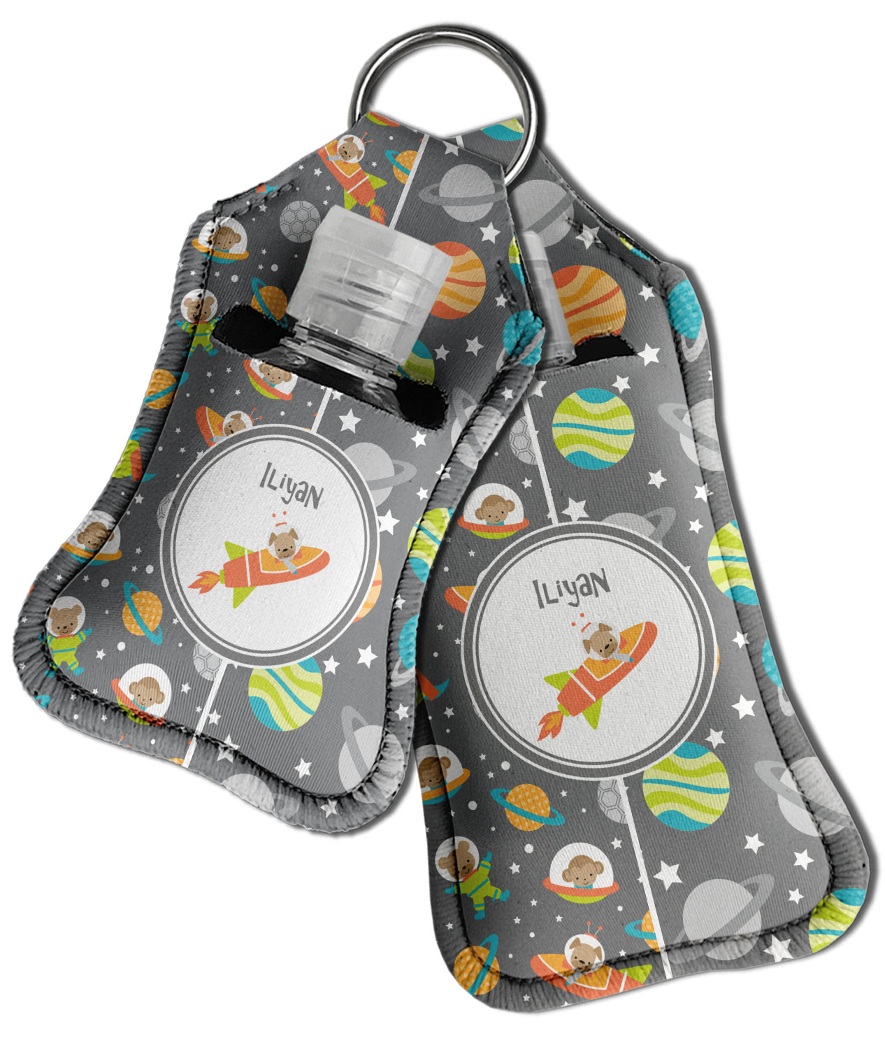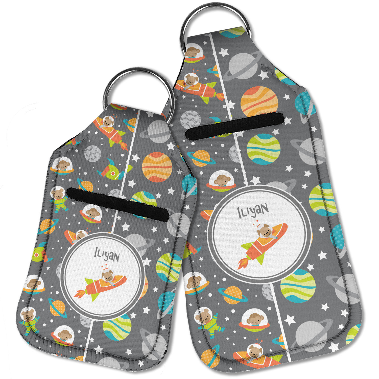 Each hand sanitizer holder comes with its own empty travel-sized, refillable hand sanitizer sure to fit snug in your customized sanitizer case! Our hand sanitizer cases are a durable, yet soft neoprene material sure to last any daily activities or travel agenda. Customize and personalize a hand sanitizer bottle holder with one of our two sizes - small (4.25" x 2.25") or large (5.5" x 2.5"). Each travel sanitizer holder comes with a keyring for attachment on bags, keys, or more!