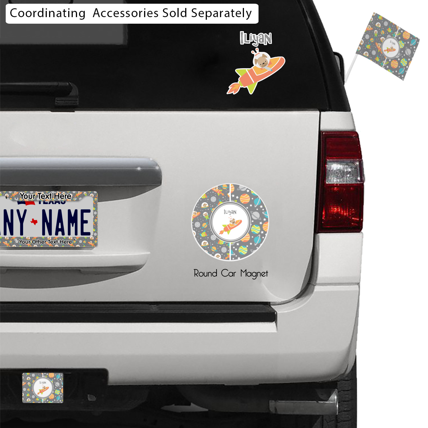 The design is filled with adorable little animal friends in space suits and space ships! On the other side, there are cute little coordinating planets! The bright colors on the animals and planets make for a great contrast to the dark grey background.