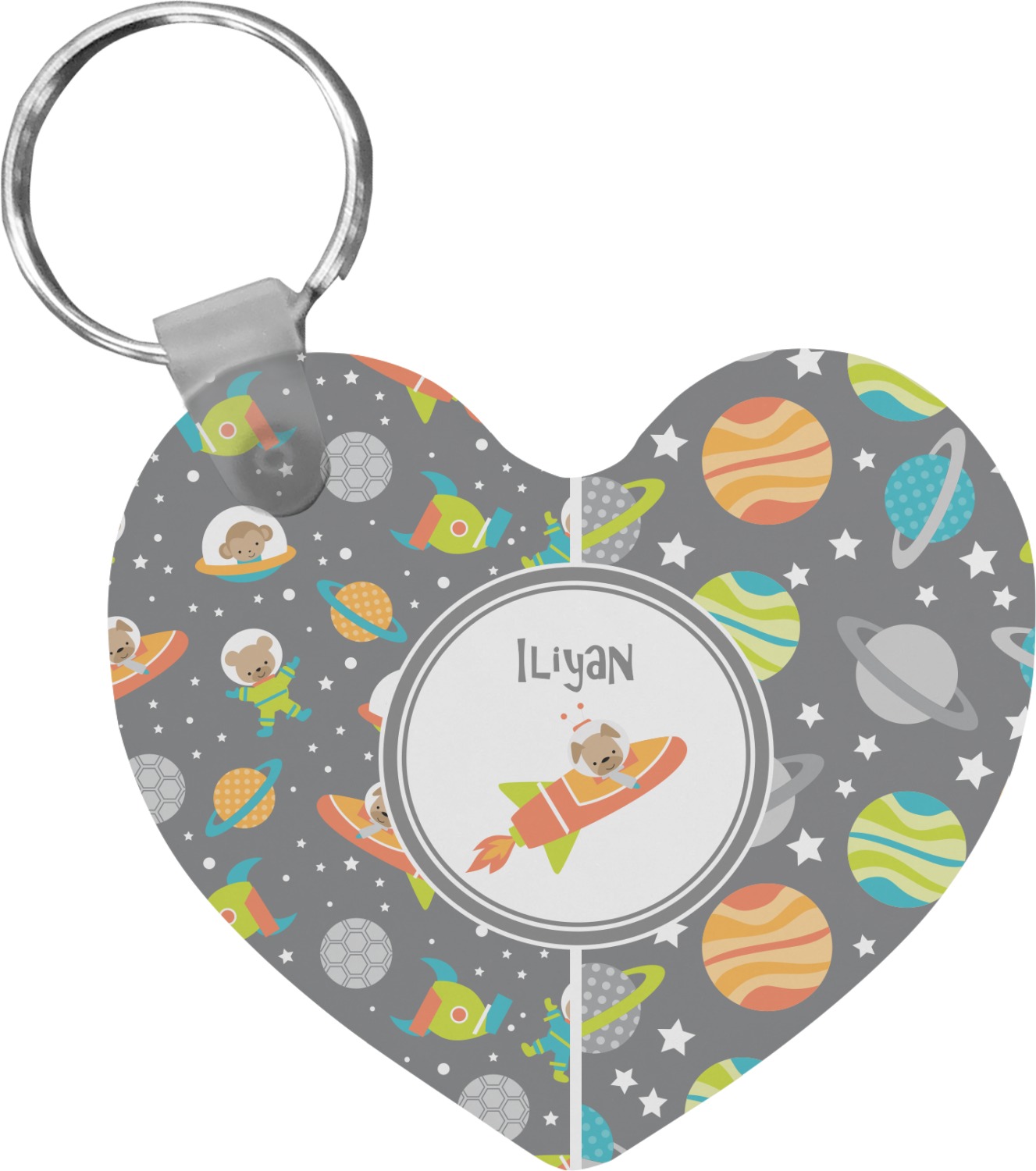 Our personalized keychains attach to the included metal, split key ring with a plastic, removable snap. Since a metal ring is included with your purchase, you have the liberty to keep your keys together on the ring, with or without your unique keychain. We offer this keychain in three different shapes: circle, heart, or diamond. We print your personalized design(s) on both sides of the key chain, and the surface has a glossy, reflective finish that only emphasizes your design. Each keychain is approximately 2.25 by 2.25 inches.