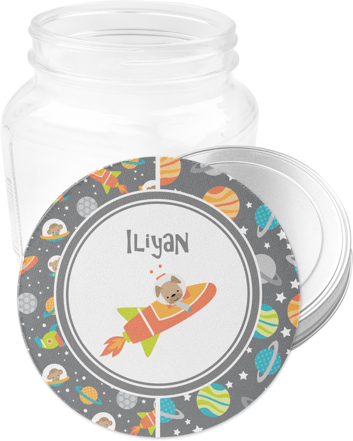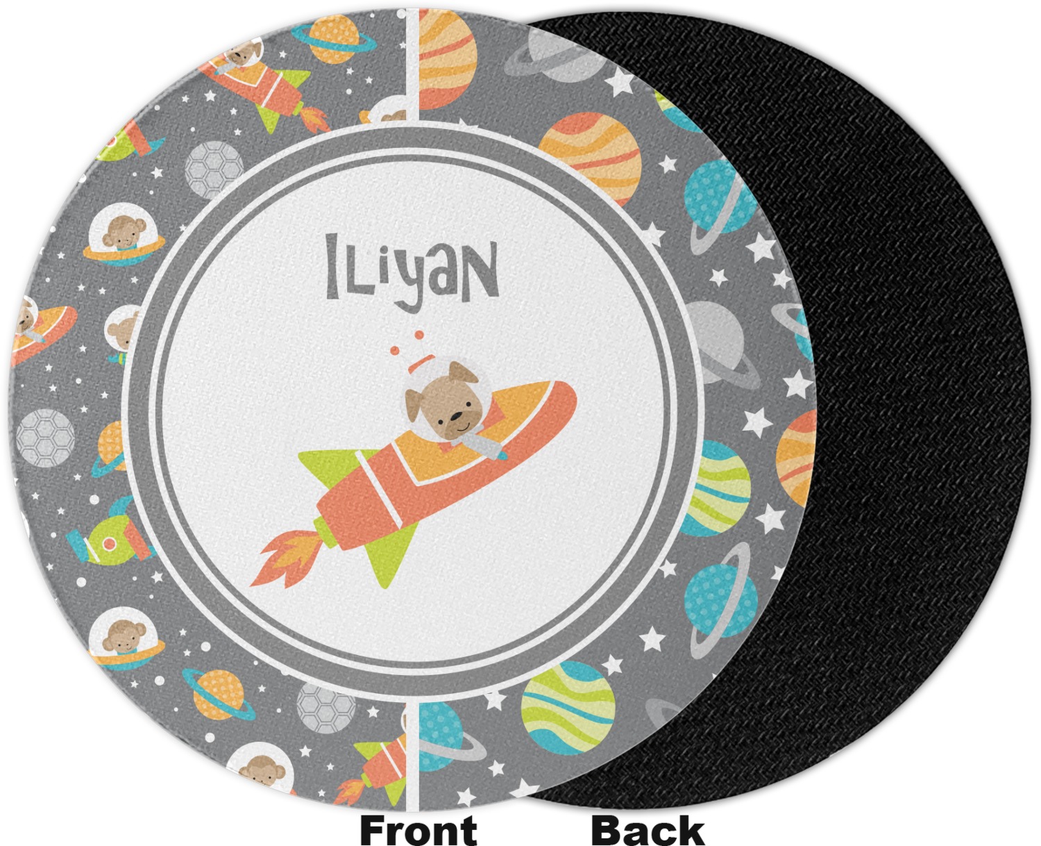 The design is filled with adorable little animal friends in space suits and space ships! On the other side, there are cute little coordinating planets! The bright colors on the animals and planets make for a great contrast to the dark grey background.