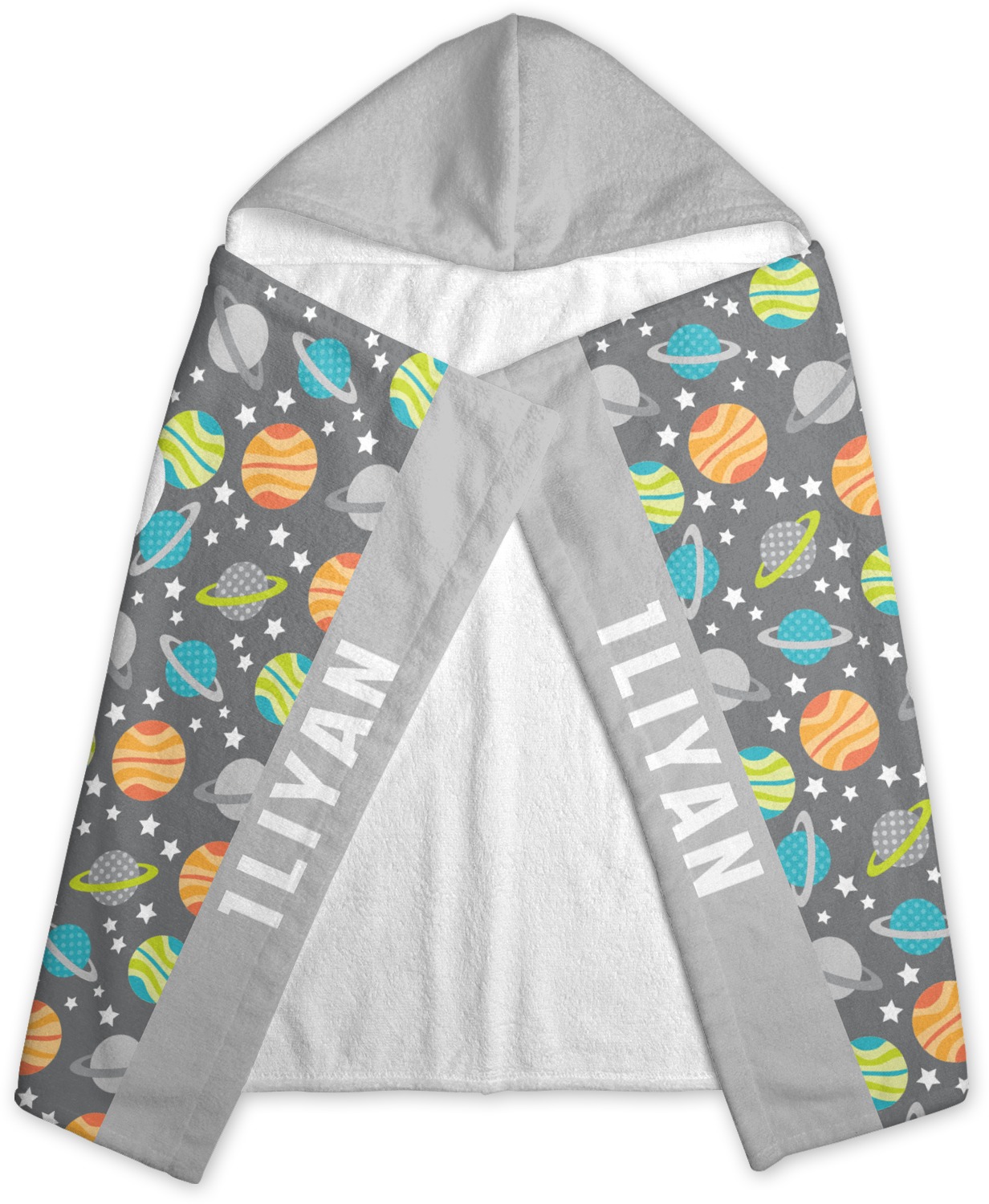 Wrap your kid in plush comfort when they come out from the bath or pool with one of our kids' hooded towels! These personalized hooded towels for kids are ideal for days at the beach or waterpark, or when they simply want to play in the sprinklers on a hot summer's day! Customize one with your child's name, favorite colors, graphics, and patterns on them to make it truly one-of-a-kind!