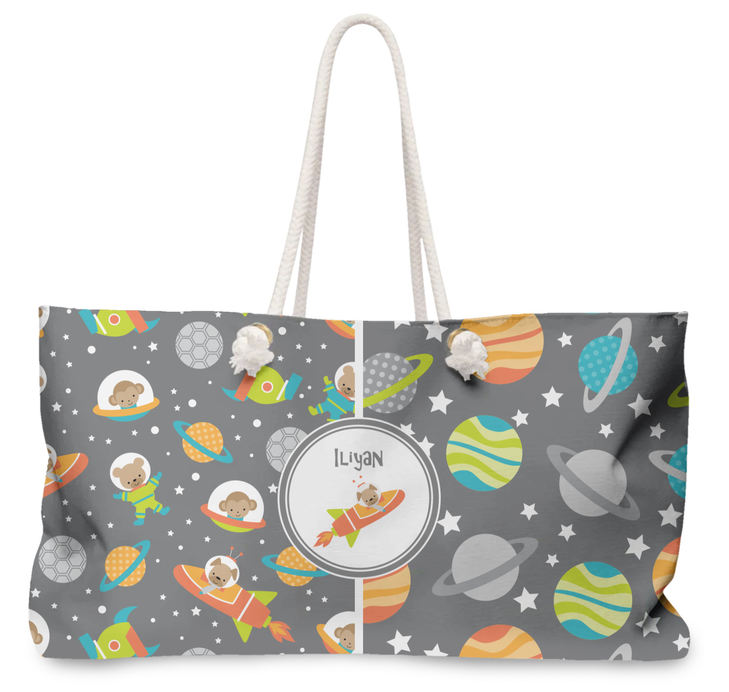 These weekender totes can be customized front and back. The totes are full all over print - so the choice of how background are endless - from beautiful floral or leaf patterns to geometrics or some classic Van Gogh artwork - the possibilities are endless. The totes can also be decorated with photos and logos.