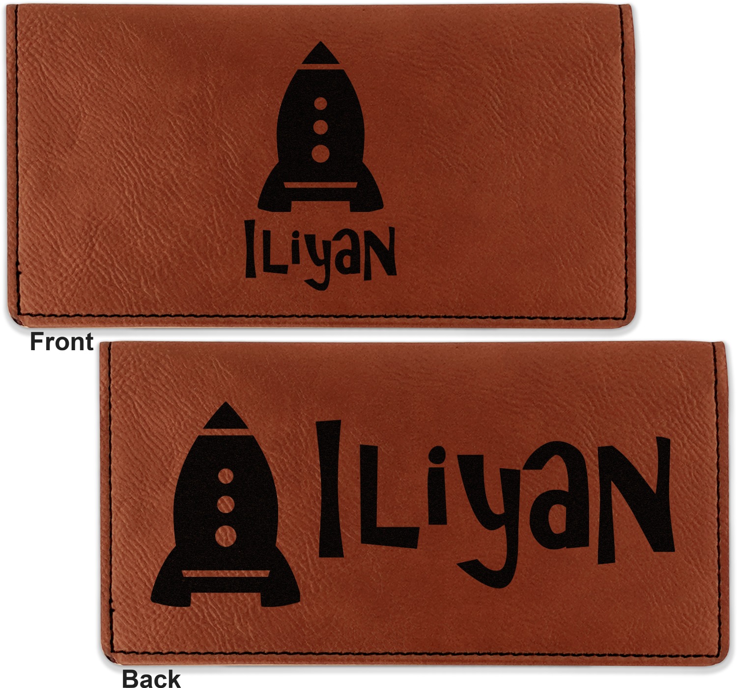 Go into our design center to start personalizing. Your checkbook cover will be laser engraved, making the graphic or text a black color. Choose a fun saying, monogram, or font to go on your checkbook cover. You have the opportunity to do it double or single sided.