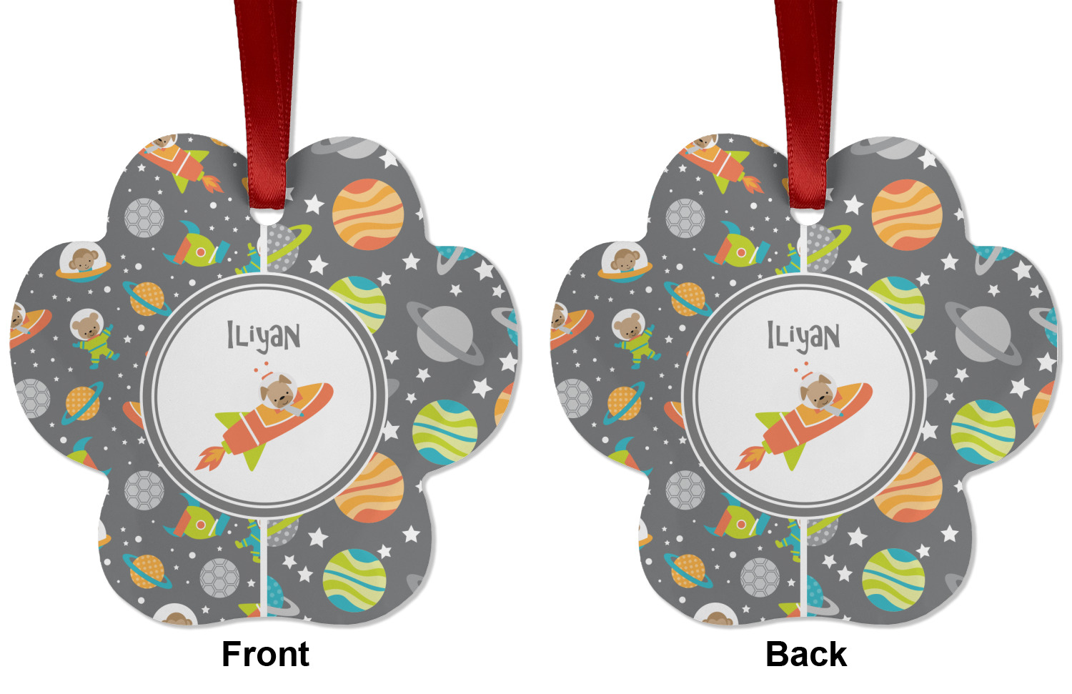 We offer double-sided printing on our personalized metal ornaments all with a gloss finish to make sure your Christmas tree continues to illuminate through the night. We offer 4 different metal ornament shapes to help express yourself or loved ones! Choose from our ball, paw print, star, or frame metal ornaments. Each metal ornament is an aluminum material sure to last you as many years as needed to share the joy and warmth of the holiday. We pair each customizable ornament with a red ribbon to tie your ornament and hang on your Christmas tree!