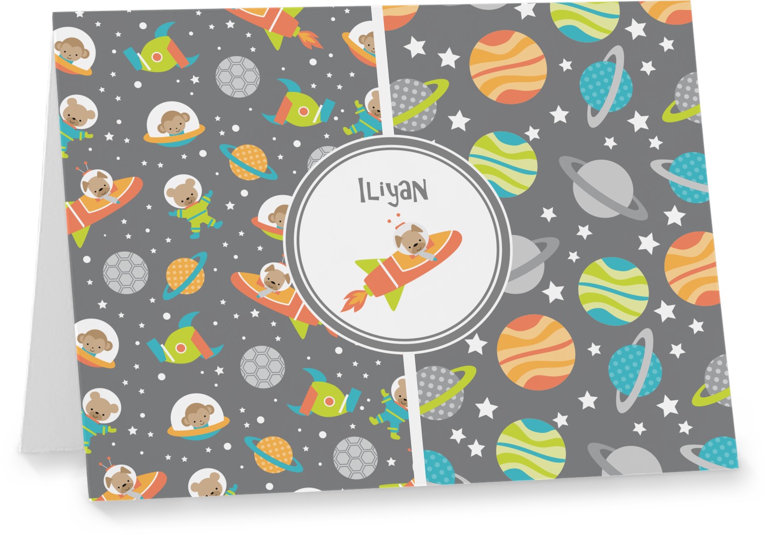 Our custom folded note cards are printed on premium 100lb. card stock and comes with white envelopes. The note card measure 5.5 by 4.25 inches and are blank on the inside for your handwritten message.