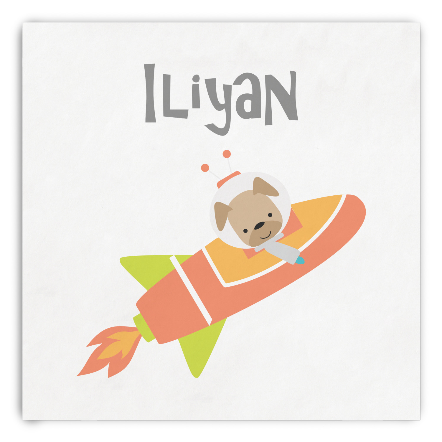 The design is filled with adorable little animal friends in space suits and space ships! On the other side, there are cute little coordinating planets! The bright colors on the animals and planets make for a great contrast to the dark grey background.