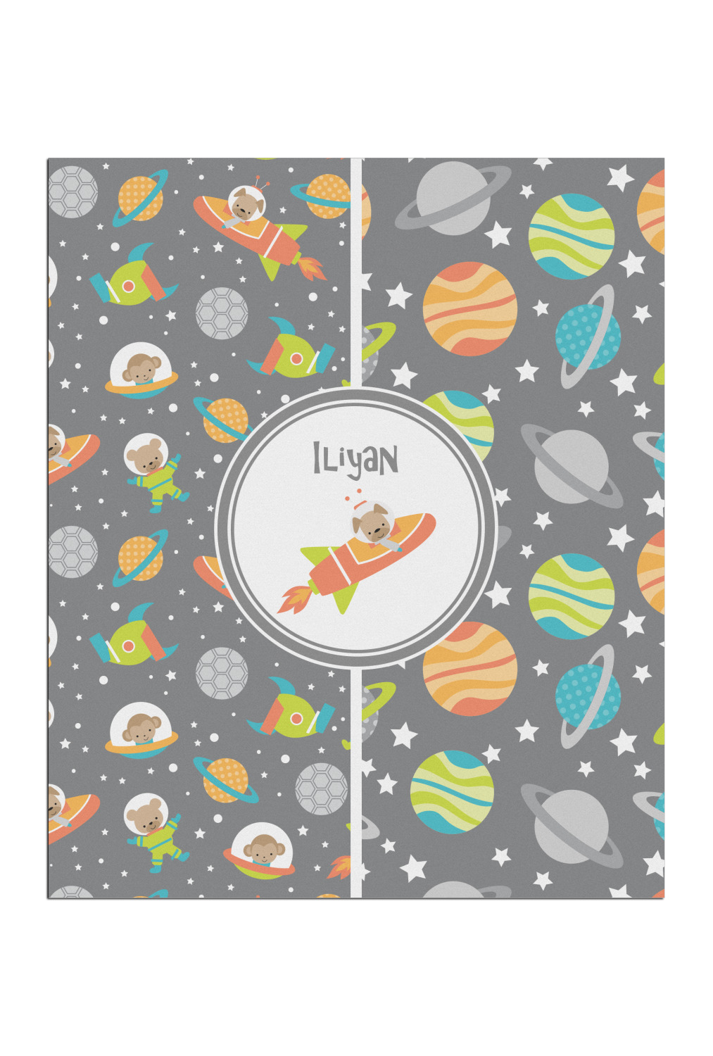 The design is filled with adorable little animal friends in space suits and space ships! On the other side, there are cute little coordinating planets! The bright colors on the animals and planets make for a great contrast to the dark grey background.