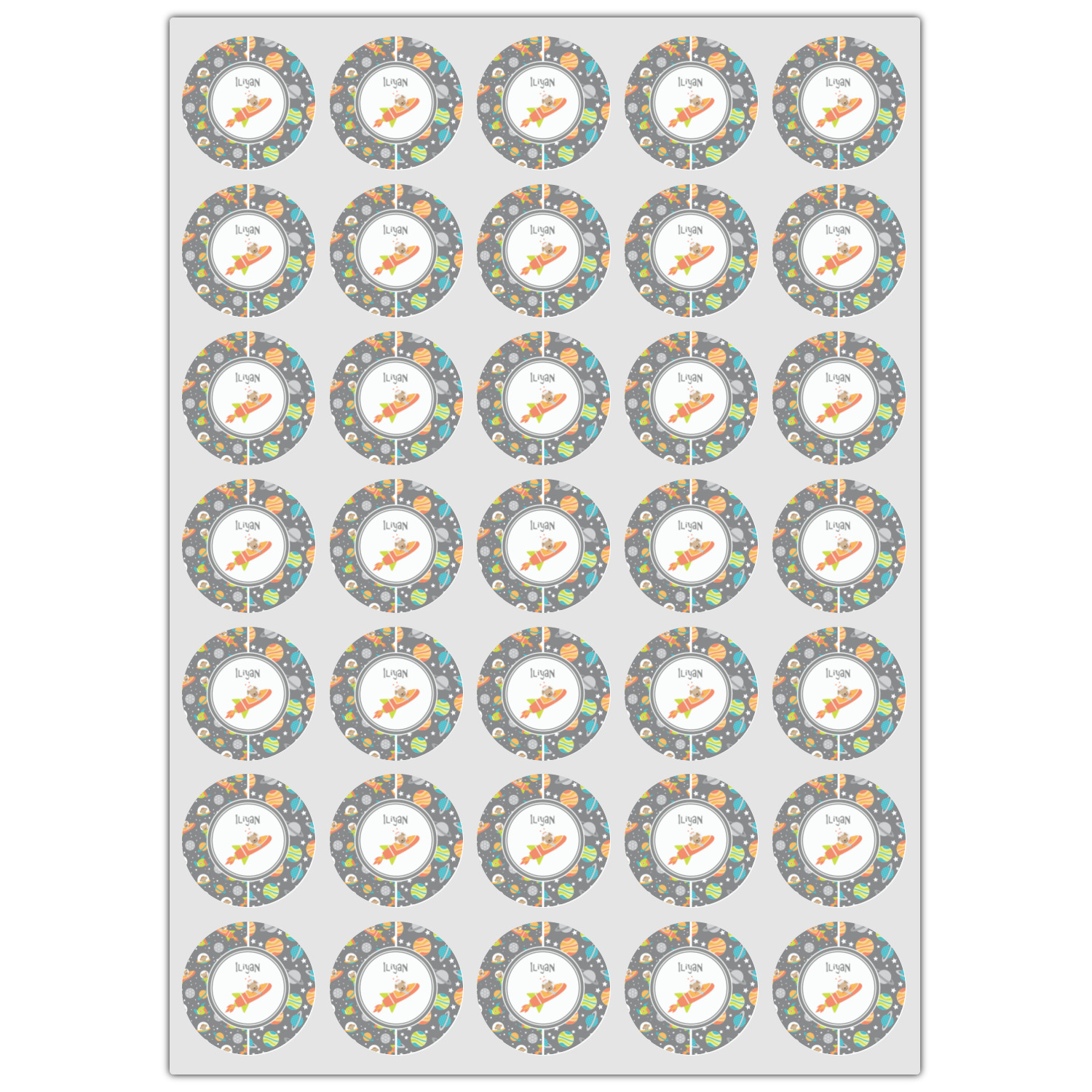 The design is filled with adorable little animal friends in space suits and space ships! On the other side, there are cute little coordinating planets! The bright colors on the animals and planets make for a great contrast to the dark grey background.