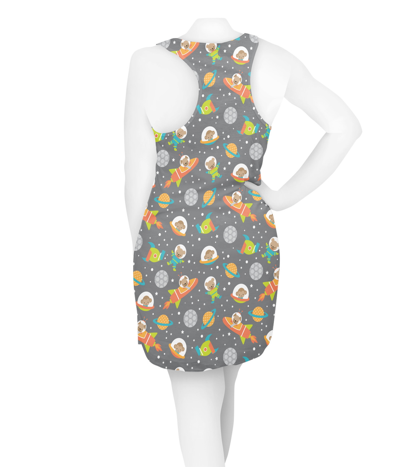 Ever want to dress up a little, but don't feel like wearing an uncomfortable dress? This racerback dress is the perfect thing! It's comfortable and adorable. You can wear it alone or with your favorite leggings. The best part? It's personalized!