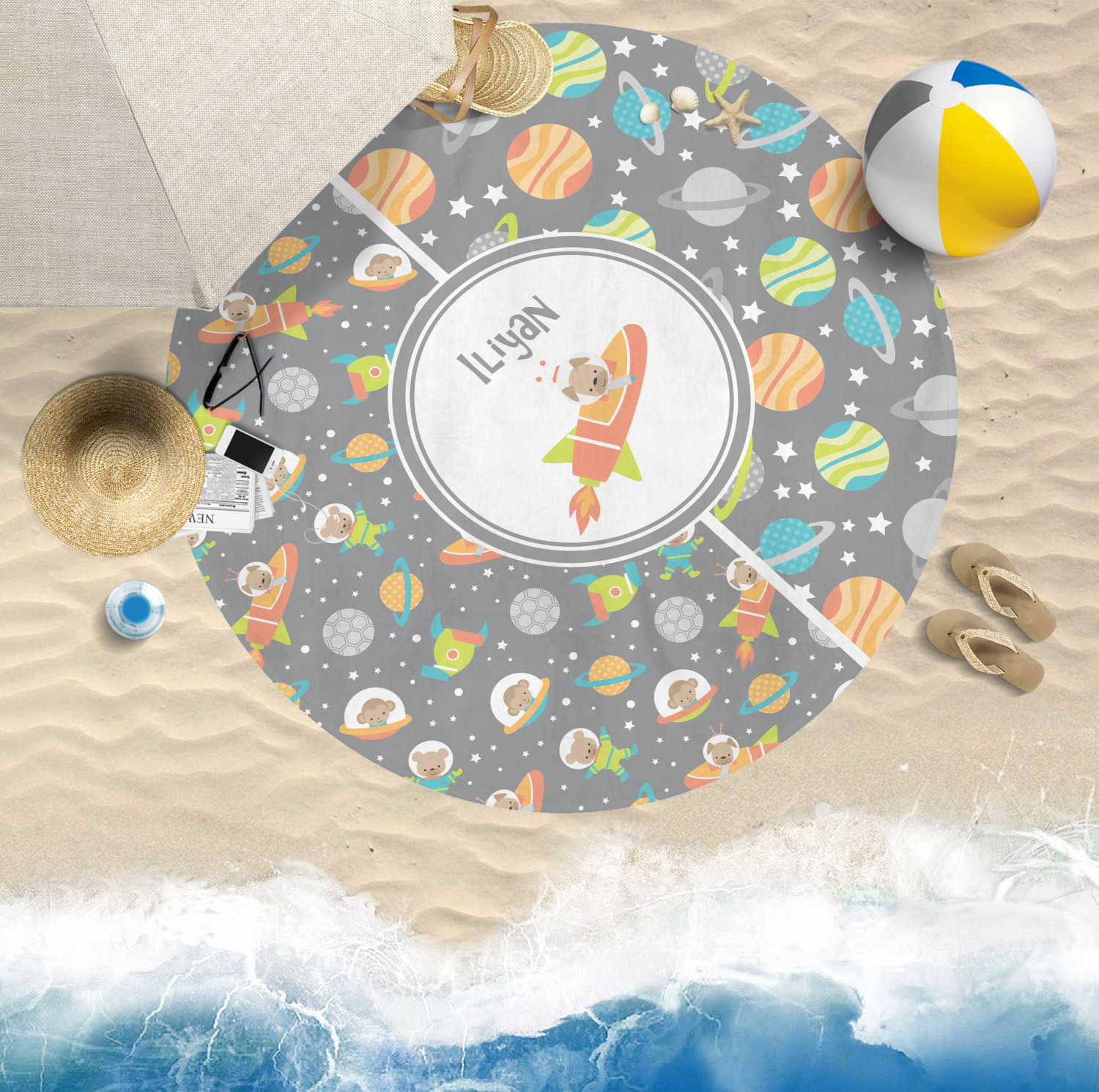 Think out of the box on your next beach, pool, or picnic day in style on your personalized round towel. This must have durable accessory is the perfect size for keeping you, and your possessions out of the sand. Sprawl out in the sun without getting your hands dirty, the unique round design allows for a full range of motion.