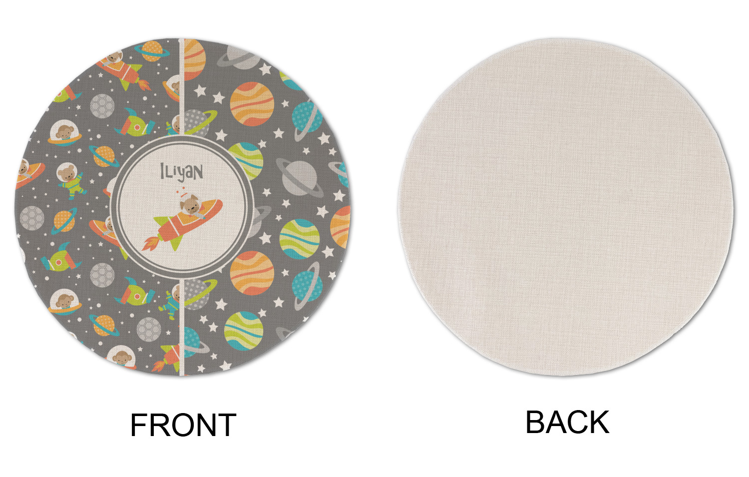 The design is filled with adorable little animal friends in space suits and space ships! On the other side, there are cute little coordinating planets! The bright colors on the animals and planets make for a great contrast to the dark grey background.