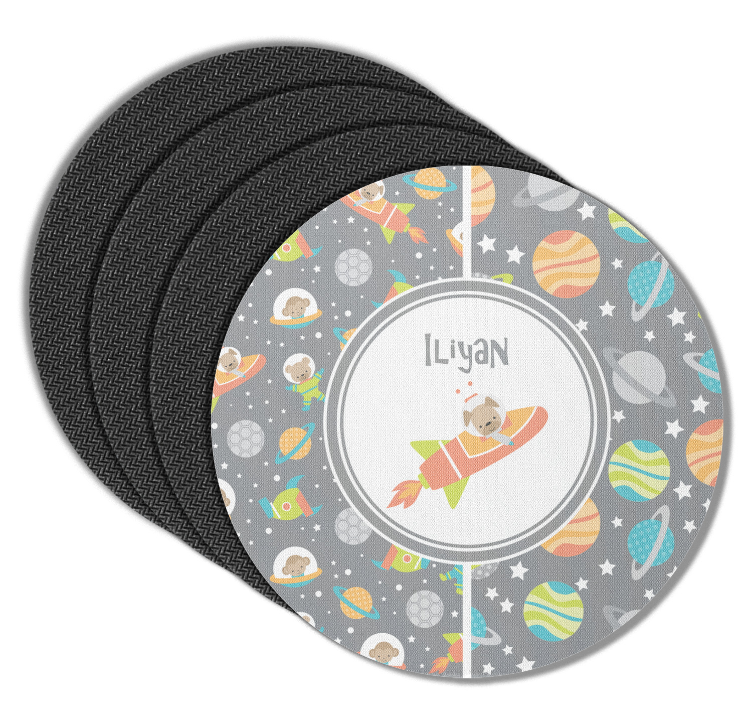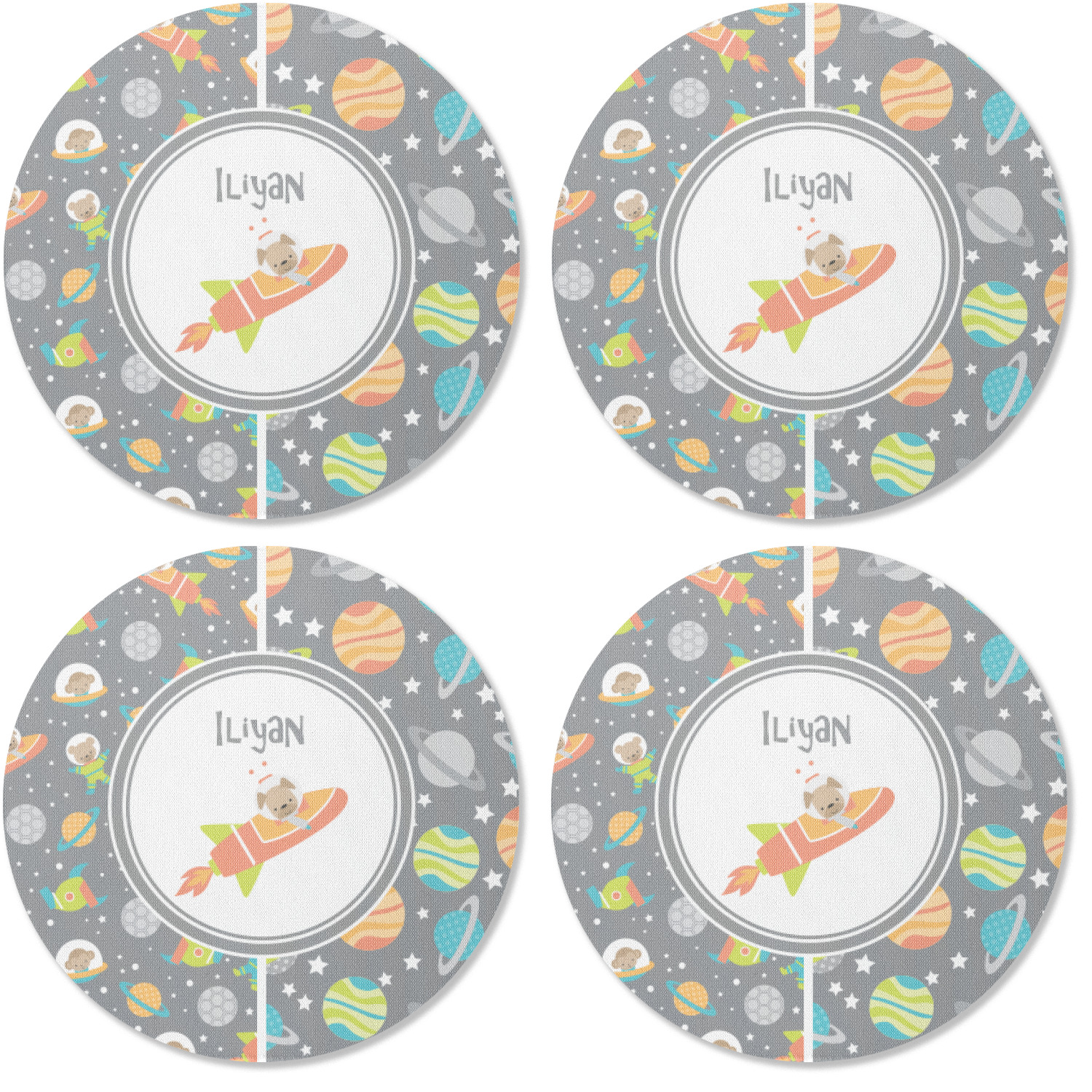 These drink coasters have a smooth, polyester top and a textured, rubber backing on its bottom. The non-slip rubber backing underneath works to keep any spills at bay. At 4 by 4 by 0.25 inches thick, these custom coasters are a suitable size for most drinkware. Your personalization is displayed atop the face of the cup coaster. We sell these rubber coasters in two different shapes: square and round. You can buy each shape as singulars or as a set of 4.