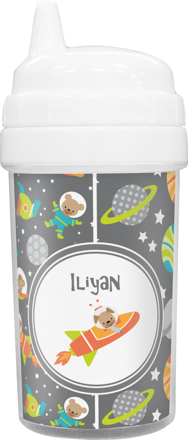 Our toddler cups are free of BPA, and have a twist-open lid so that you can easily fill and clean these cups for your young ones. Each cup also comes with a sippy nozzle to reduce spills. We offer these custom sippy cups in two different sizes; we have a baby sippy cup that holds 5 ounces, and a toddler sippy cup that holds 10 ounces. Your customization is printed on a premium glossy media insert that is placed within these toddler drinking cups.