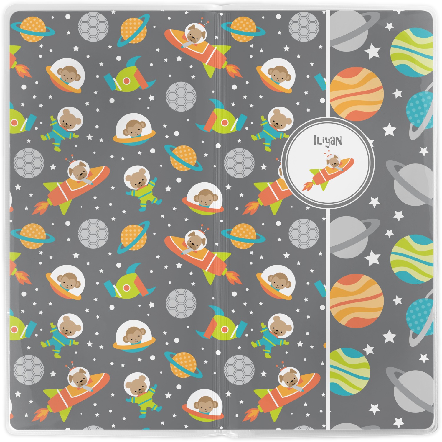 The design is filled with adorable little animal friends in space suits and space ships! On the other side, there are cute little coordinating planets! The bright colors on the animals and planets make for a great contrast to the dark grey background.