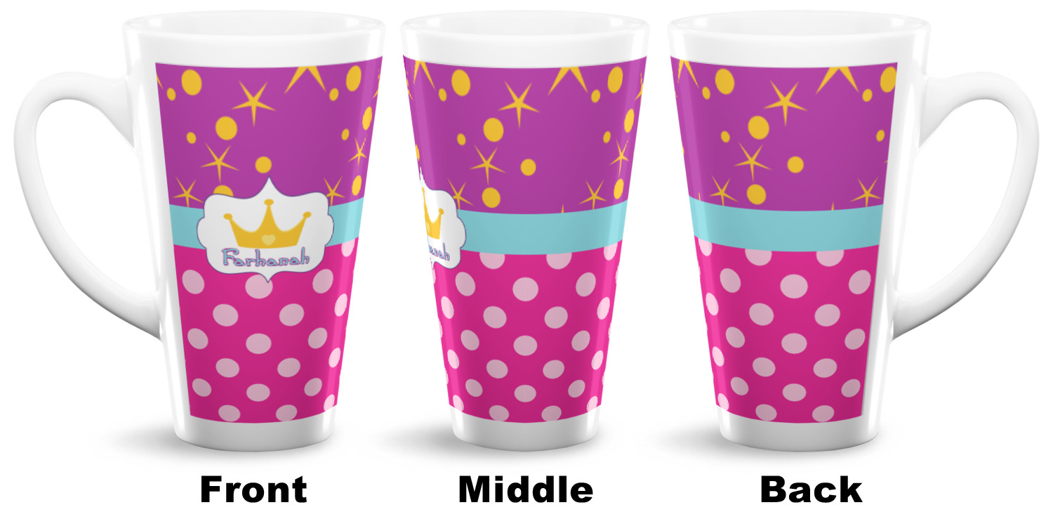 Choose from one of our two ceramic latte mug sizes. Our 12oz latte cups are great for a few shots of espresso or some tea before bed. The 16oz mug is a tall latte mug perfect to hold iced coffee or give you extra room to sip your favorite drink. We print your design with a glossy finish wrapping around the outside of the ceramic mug, so make sure your design is displayed to your ideal vision!