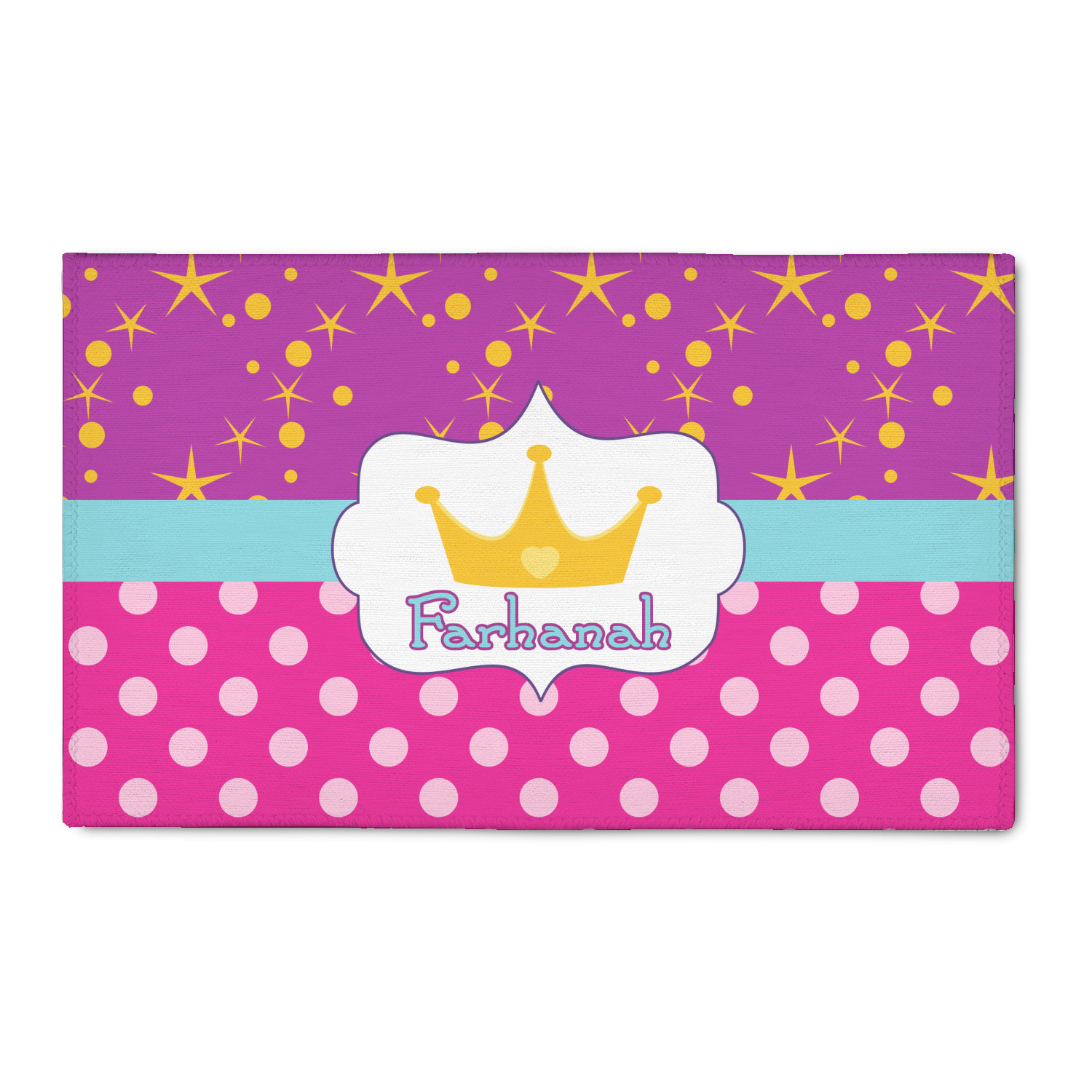 Set with fun colors of purple, pink, and teal, the design highlights a decorative label, the perfect place for the name of your little princess.