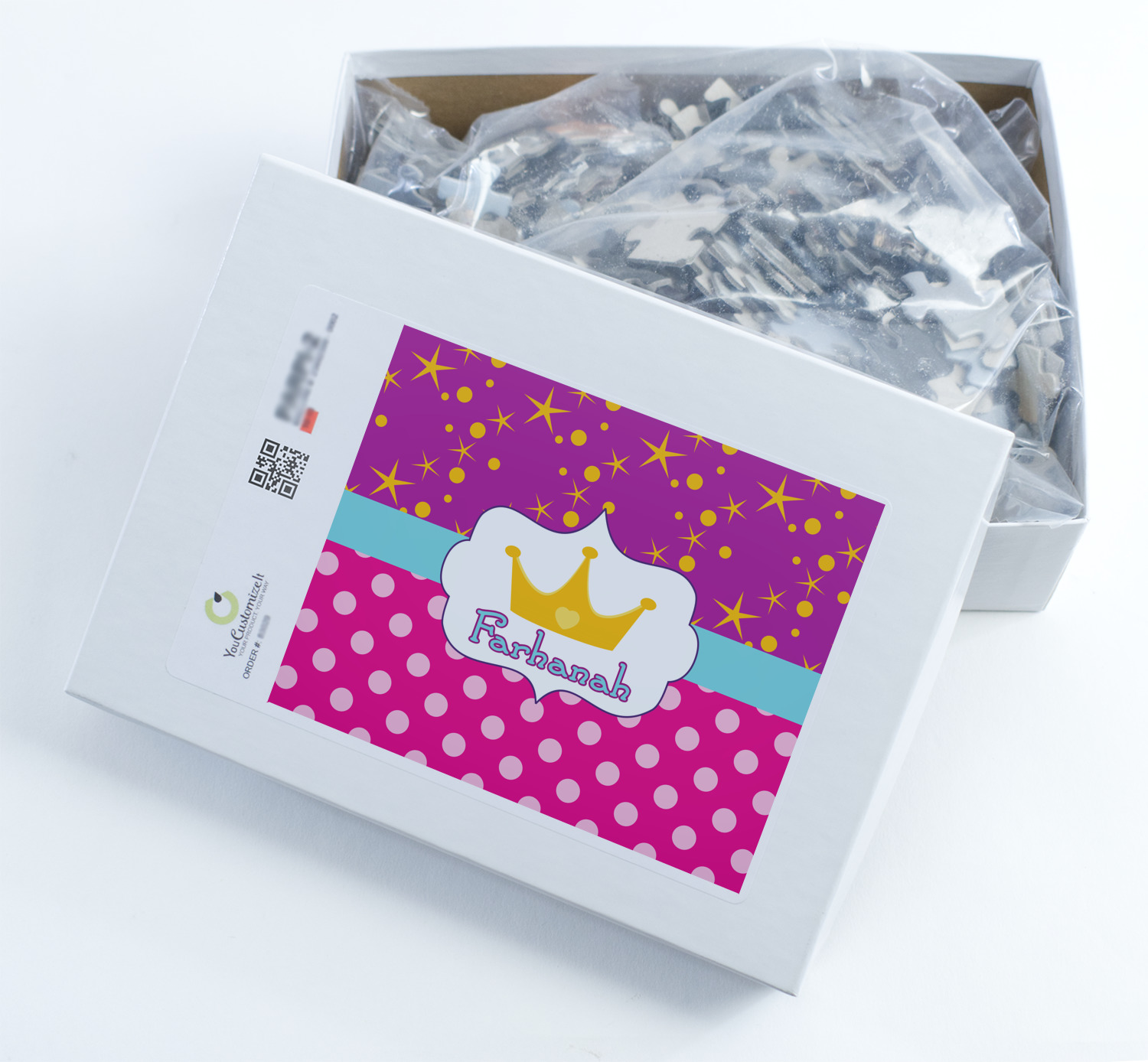 You can also upload your logo or art that you or your kids drew. To create more challenging jigsaw puzzles, you can create a pattern from with your logo or artwork. You can also add other elements such as text or personalization.