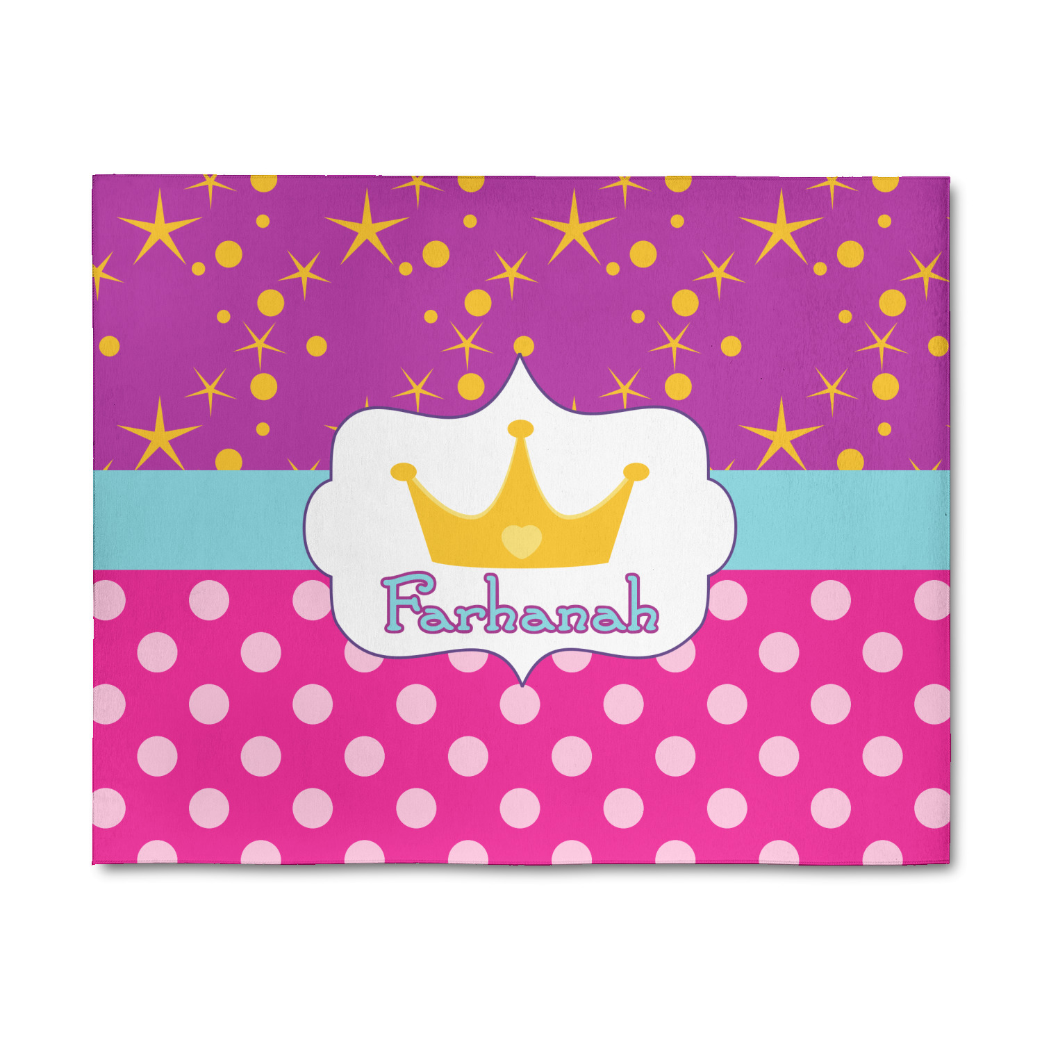 Set with fun colors of purple, pink, and teal, the design highlights a decorative label, the perfect place for the name of your little princess.