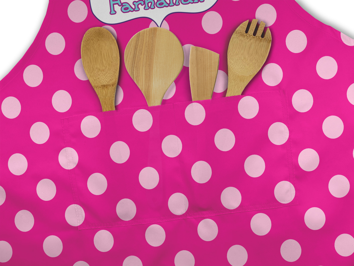 Our aprons are a lightweight yet durable polyester material. We offer two styles of aprons, one without pockets and one with two pockets adorning the center near the waistline. Each apron is one size* and comes with adjustable straps for both the neckline and waist. We print your custom design on the front of the apron to display your creativity!