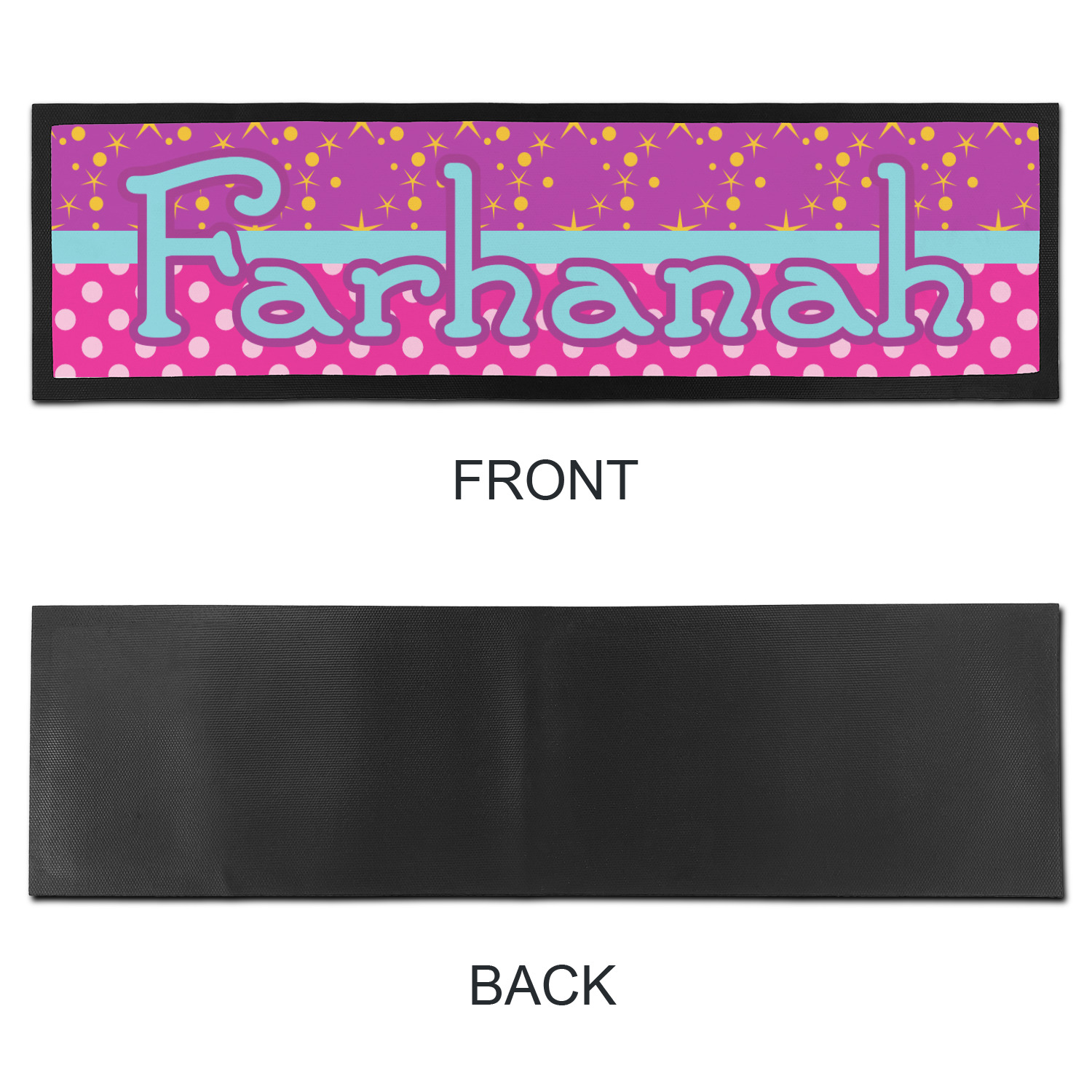 Set with fun colors of purple, pink, and teal, the design highlights a decorative label, the perfect place for the name of your little princess.