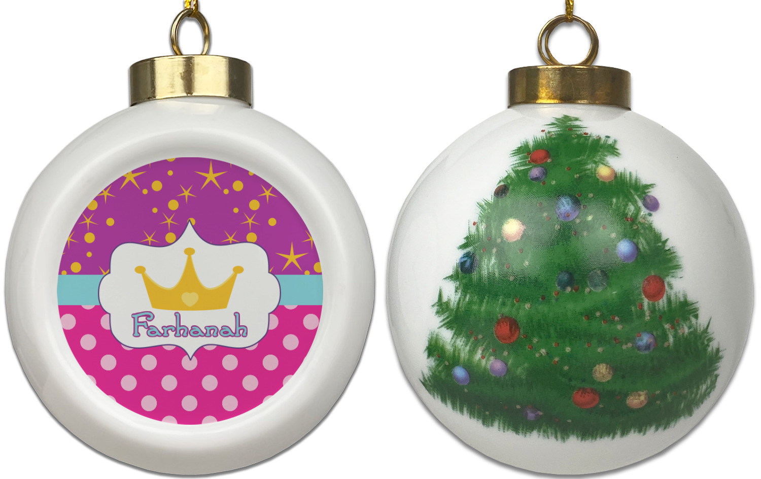 Our Christmas ornaments are a unique ceramic ball shape with a twist as it has a flat face to display your custom design! Select from one of our two design types - Christmas Tree or Poinsettia Garland - to adorn the curved back of your personal design. Each ornament measures 3H x 2.5W x 2D accompanied with a gold string accent for finishing touches to hang on your beautiful Christmas tree!