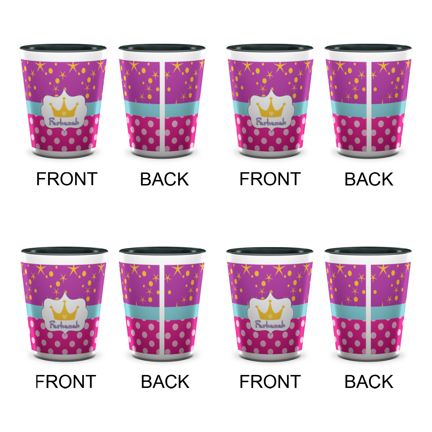 Made from ceramic these shot glasses are printed in full color with the design of your choice. These are a standard 1.5oz size and stand 2.25" tall. Available in a full white ceramic or a two-tone with a black color inside the shot glass. Buy a single or a set of 4, all of which can be designed separately to get you just what you want and need.