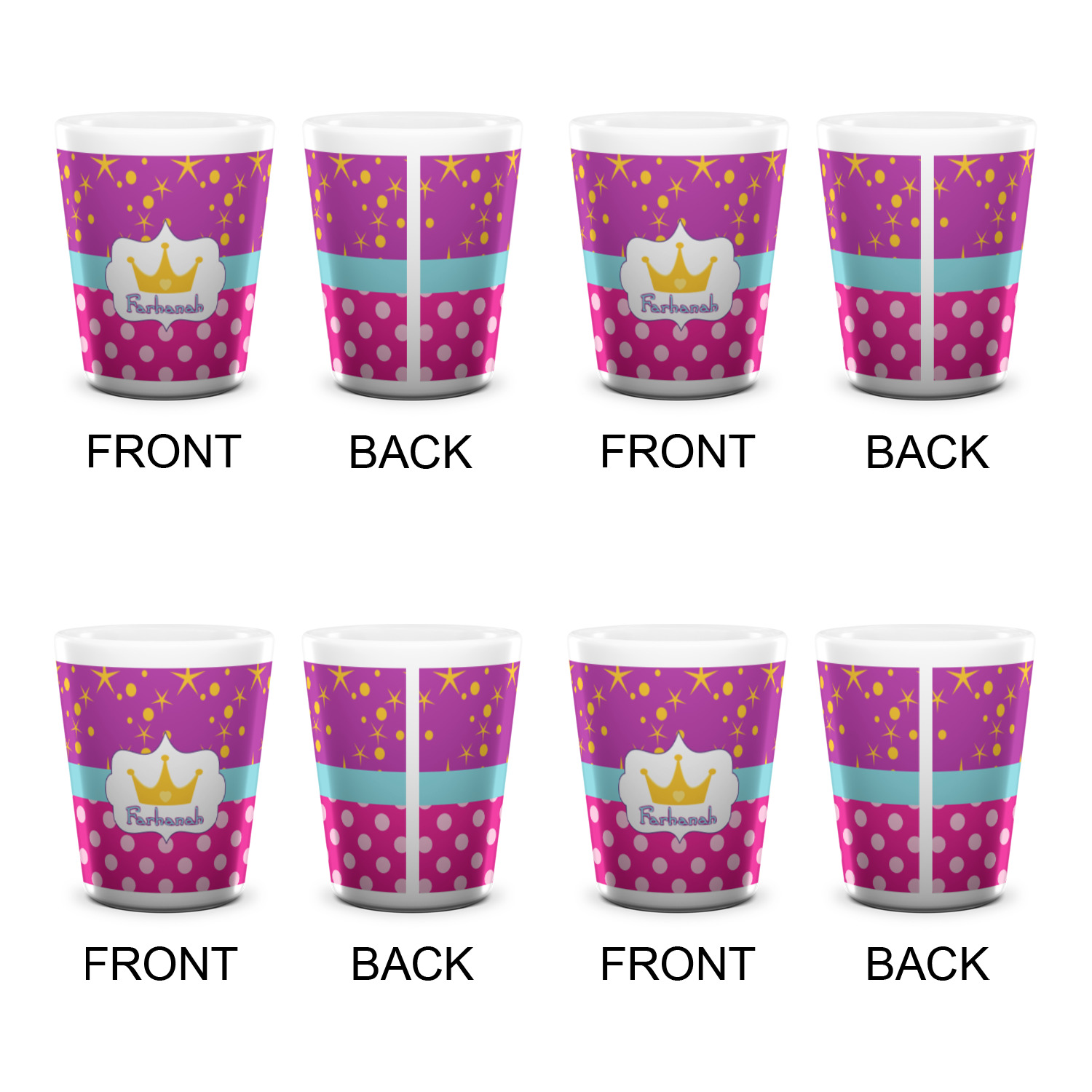 Made from ceramic these shot glasses are printed in full color with the design of your choice. These are a standard 1.5oz size and stand 2.25" tall. Available in a full white ceramic or a two-tone with a black color inside the shot glass. Buy a single or a set of 4, all of which can be designed separately to get you just what you want and need.