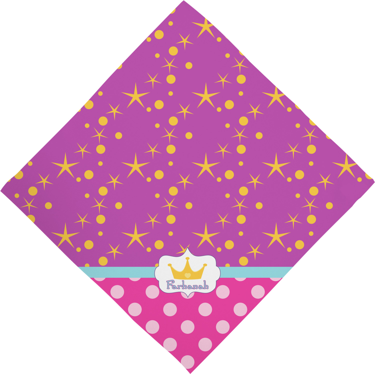 This beautiful pet bandana really is the perfect accessory. It is made from a silky feeling polyester and measures at approximately 23" x 23". Your personalization will be printed on a diagonal, so that you are able to read the personalization when folded into a triangle. This bandana fits best on large dogs, but can be folded smaller if there is no personalized text to fit smaller pets.