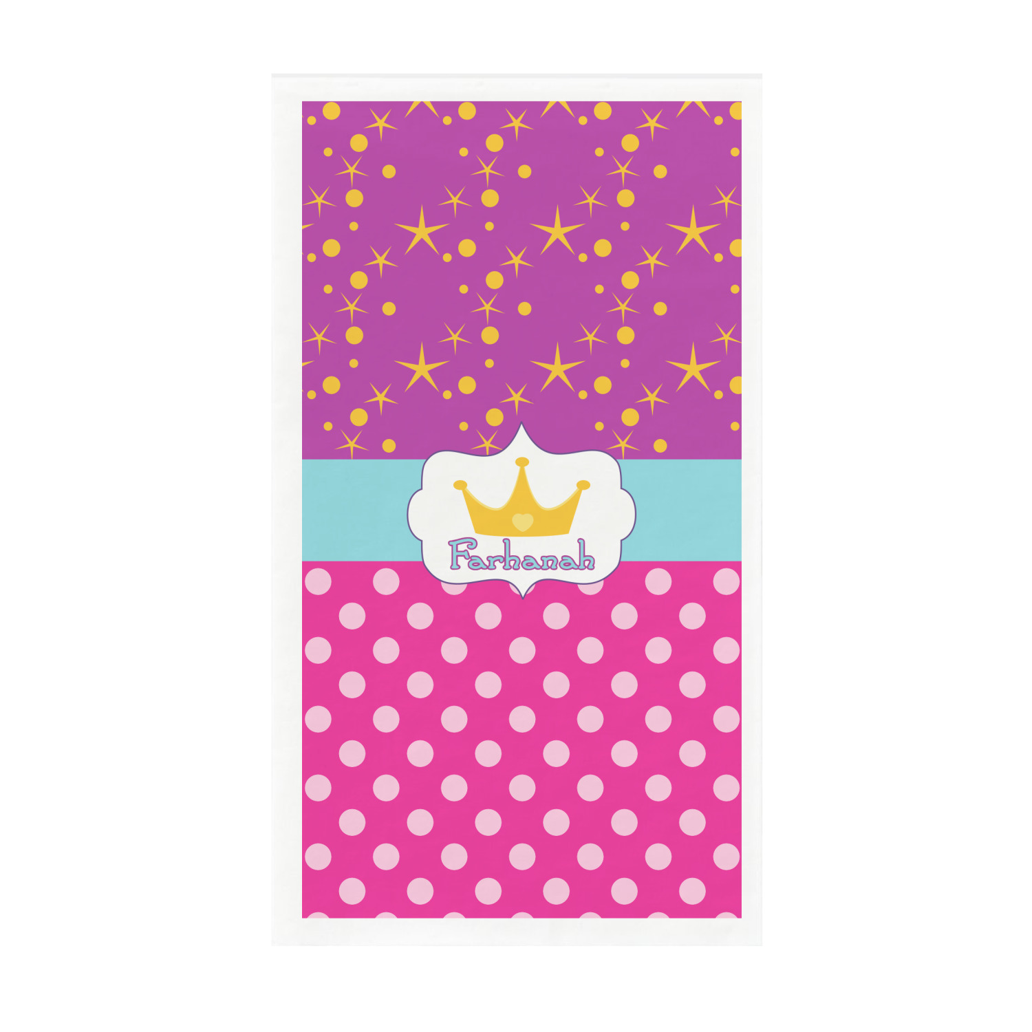 Set with fun colors of purple, pink, and teal, the design highlights a decorative label, the perfect place for the name of your little princess.