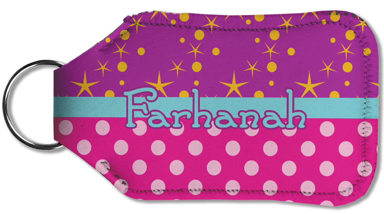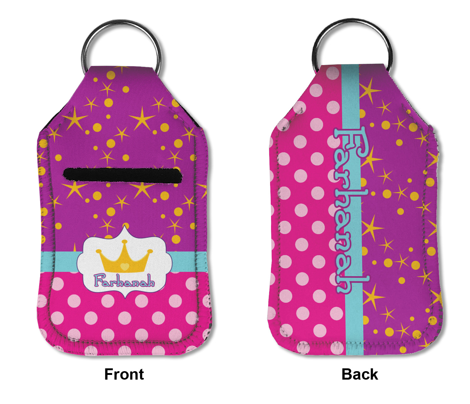 Each hand sanitizer holder comes with its own empty travel-sized, refillable hand sanitizer sure to fit snug in your customized sanitizer case! Our hand sanitizer cases are a durable, yet soft neoprene material sure to last any daily activities or travel agenda. Customize and personalize a hand sanitizer bottle holder with one of our two sizes - small (4.25" x 2.25") or large (5.5" x 2.5"). Each travel sanitizer holder comes with a keyring for attachment on bags, keys, or more!