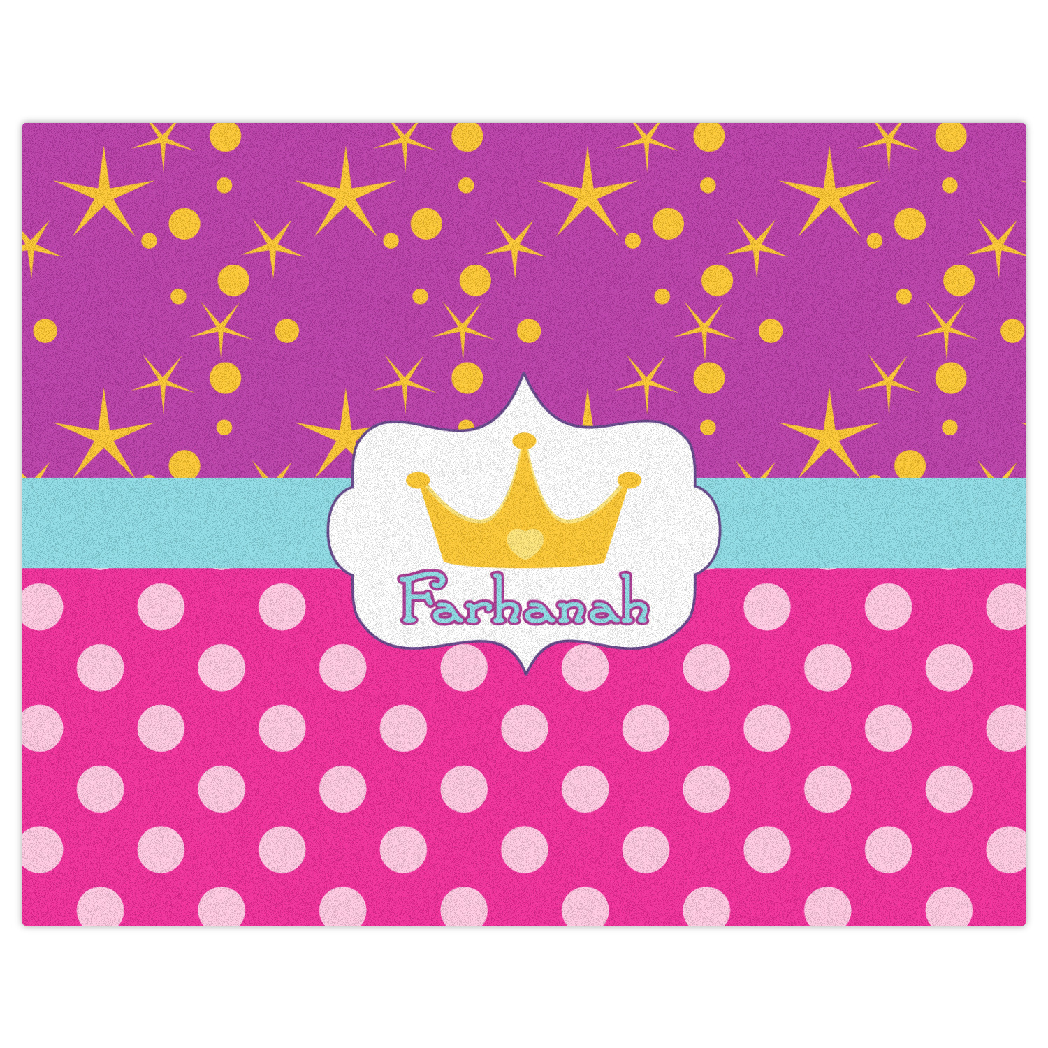 Set with fun colors of purple, pink, and teal, the design highlights a decorative label, the perfect place for the name of your little princess.