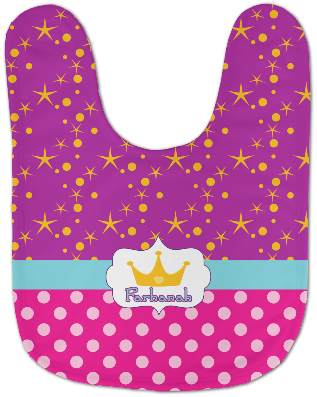 Made of soft polyester, each customizable bib hugs comfortably around the neck to catch every drip and drool. Each bib design is printed with baby-safe ink and finished with a secure stitch pattern and velcro clasp. We carry two customizable bib styles -Microfiber Velour and Jersey Knit.