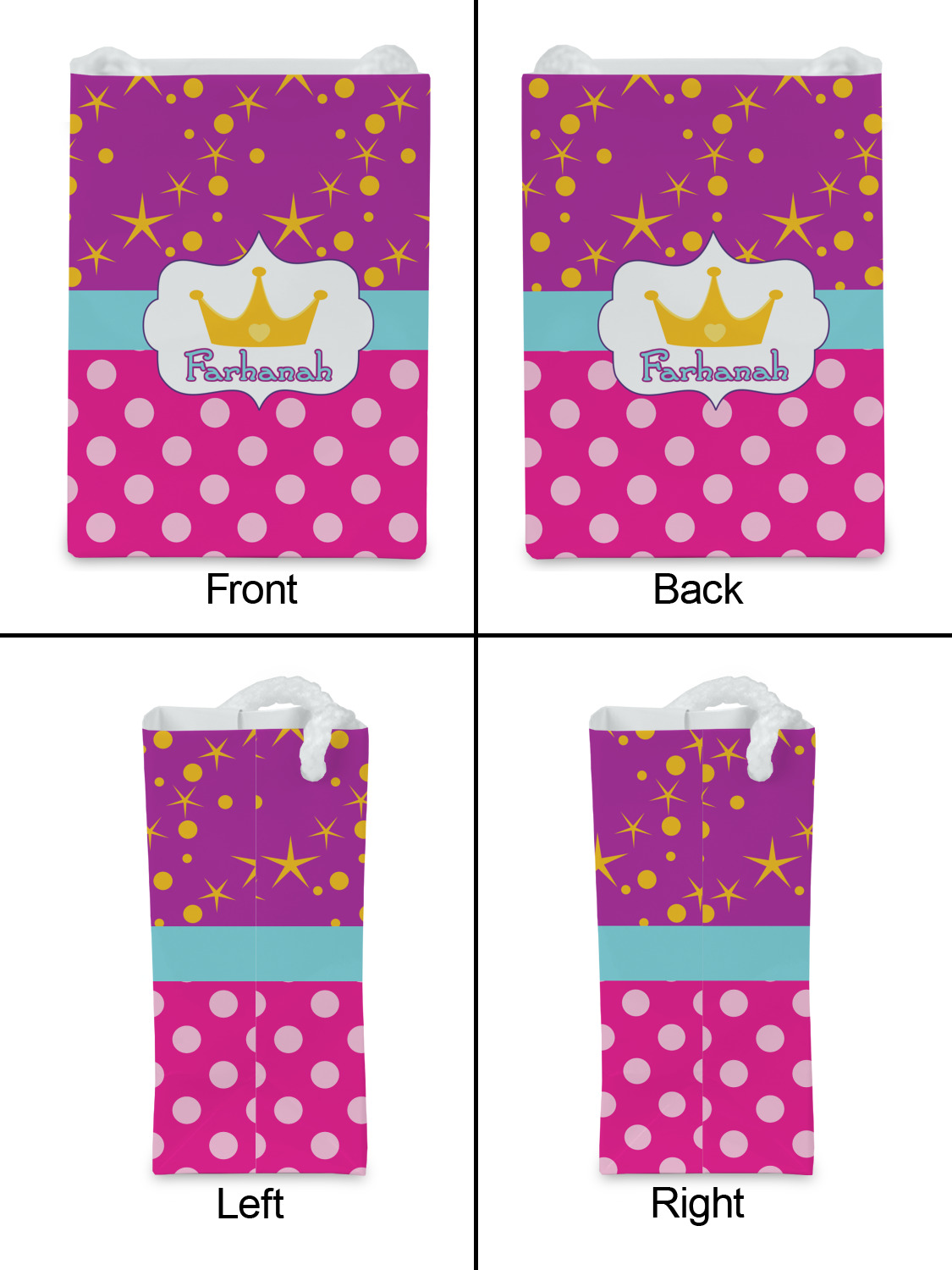 These jewelry gift bags are available in two finishes - matte or gloss. The are digitally printed in full color, then cut down to size, scored & folded. A single handle is attached.