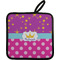 Along with our heat resistant gloves, we also carry personalized pot holders. These pot holders also feature a neoprene front that displays your personalization, and a textured, rubber backing for a sturdy grip. The two materials are connected with a sleek, black trim, and the hot pot holder also includes an attached loop for hanging and storage. You can purchase a kitchen pot holder by itself, or alongside a right or left oven mitt, depending on your needs. The pot holder itself is approximately 8.75 inches by 8.75 inches and 0.25 inches tall.