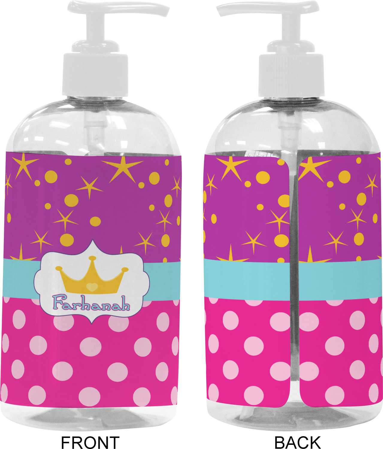 We adhere and wrap your custom printed design around the clear plastic bottle; there is a slight gap at the back for you to see the liquid level. Your design is printed on high gloss vinyl with eco-solvent inks and completely waterproof and will not fade or deteriorate over time. The vinyl is machine cut and adhered by hand to the clear plastic bottle.