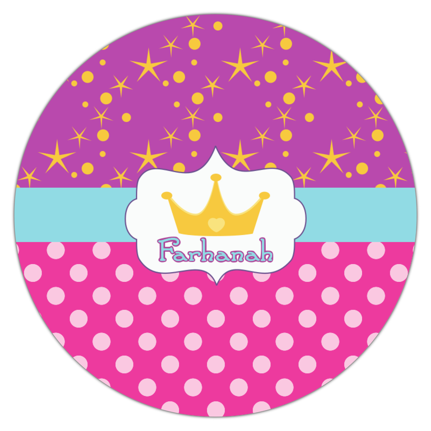 Set with fun colors of purple, pink, and teal, the design highlights a decorative label, the perfect place for the name of your little princess.